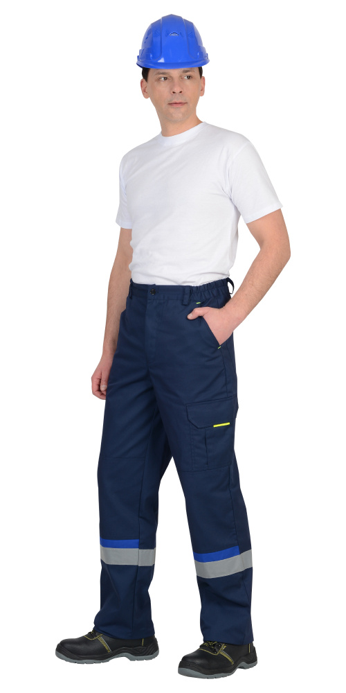 Брюки с застёжкой спереди на молнию, с внутренними боковыми карманами, с наколенниками, с накладным карманом на левом боковом шве с клапаном на липучке с патой, с двумя карманами на задних половинках и карманами для инструментов. По низу брюк настрочена СОП.