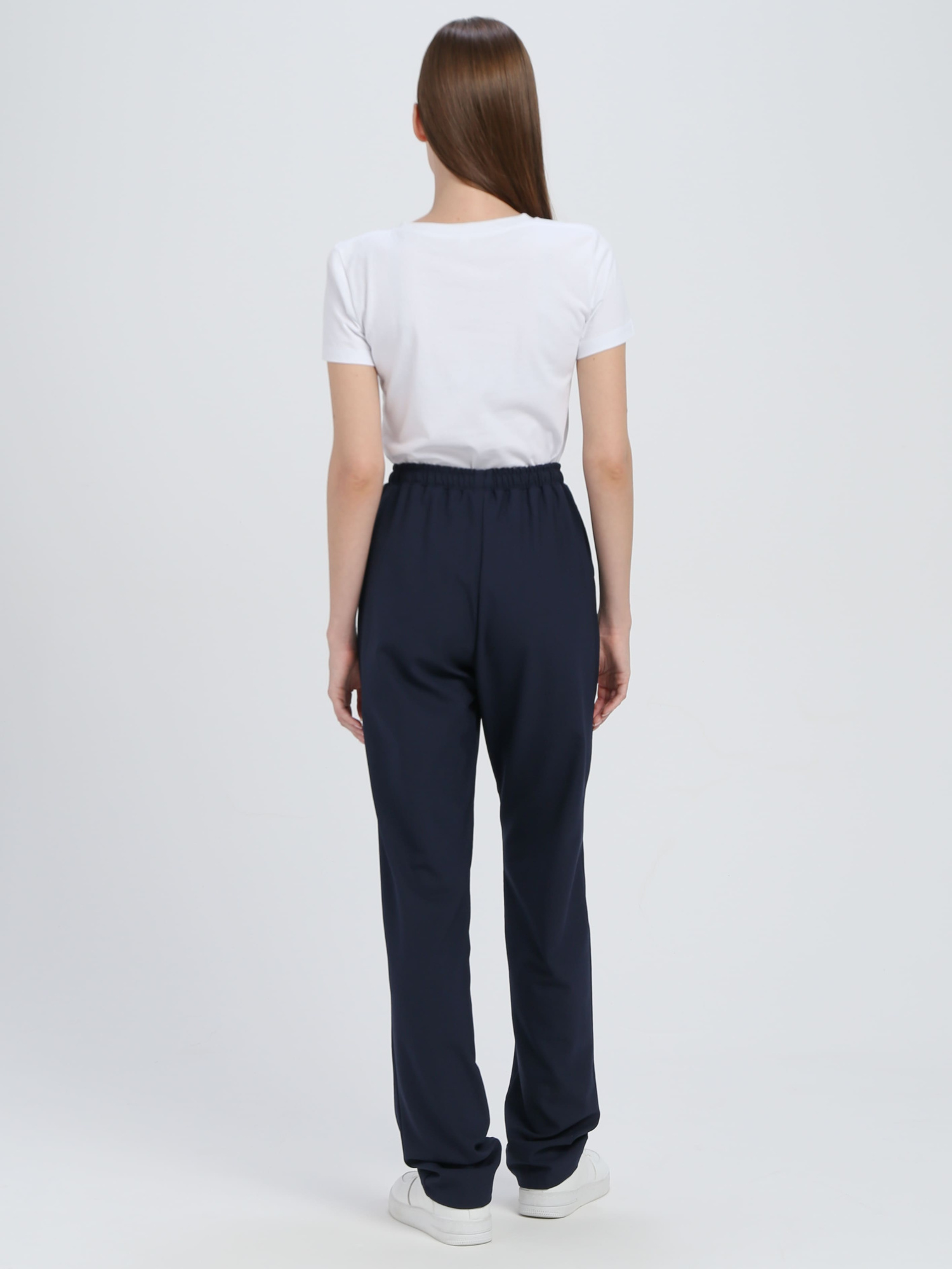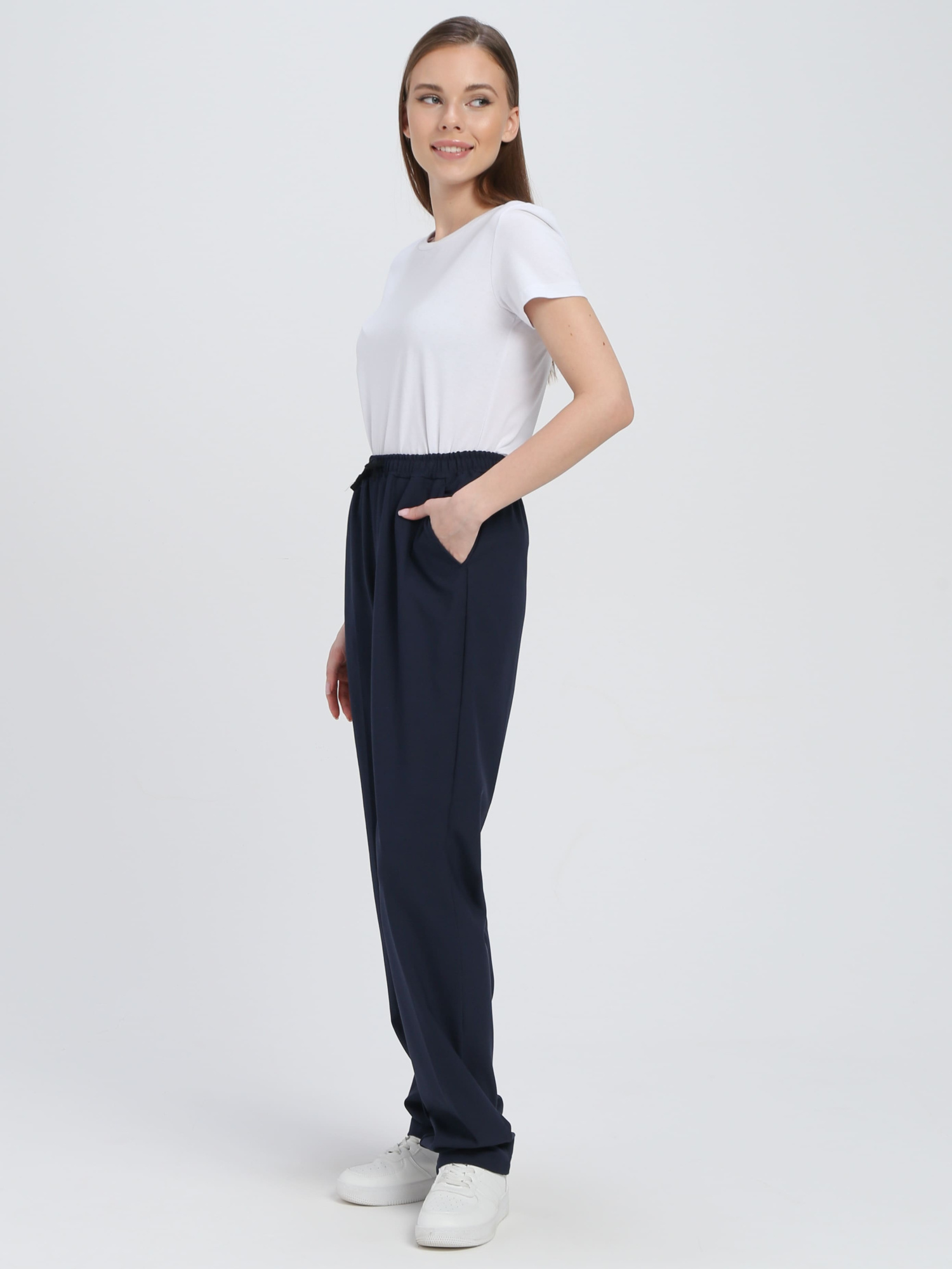 Брюки женские чуть зауженные к низу из смесовой гладкокрашеной ткани.