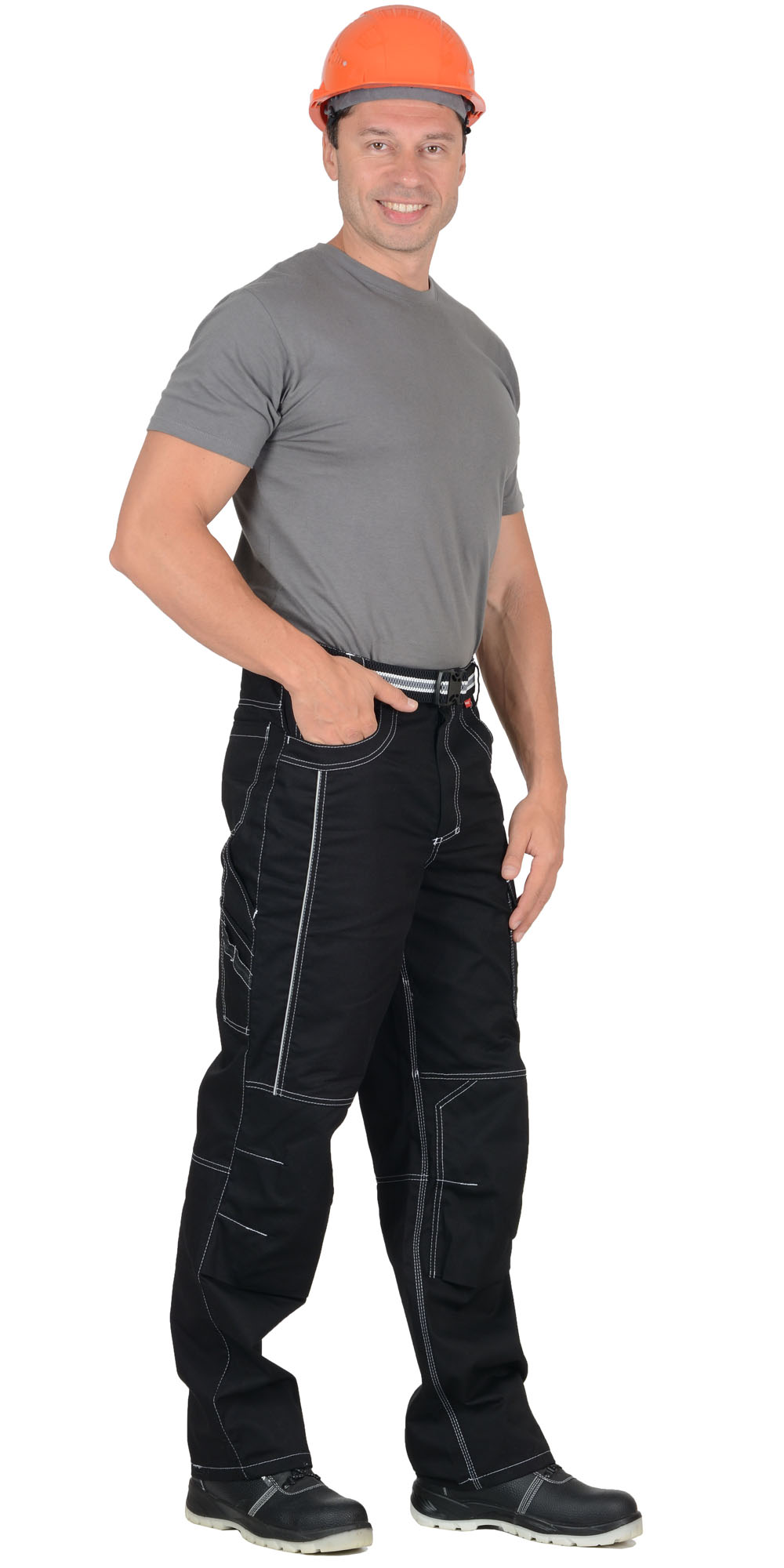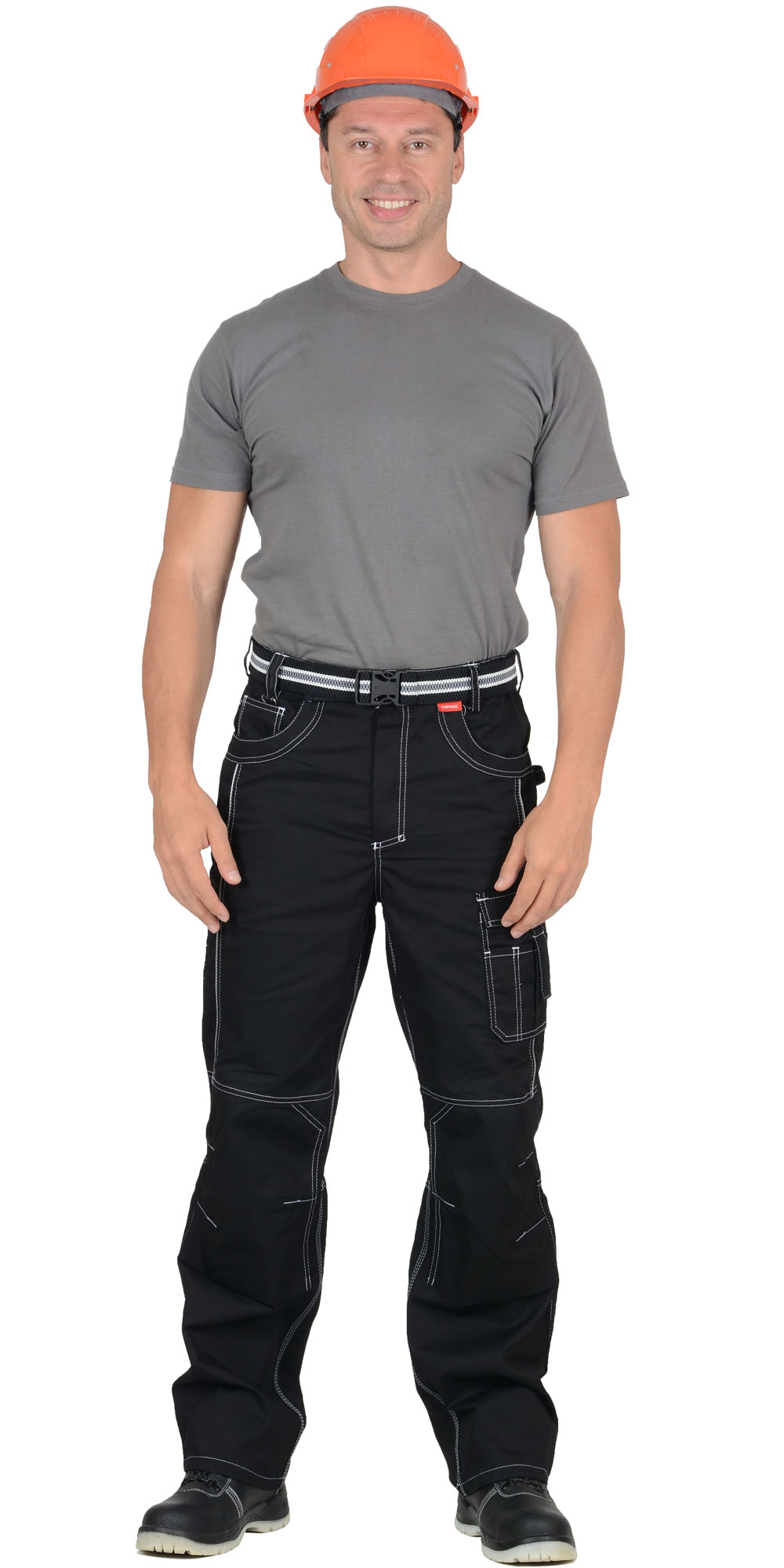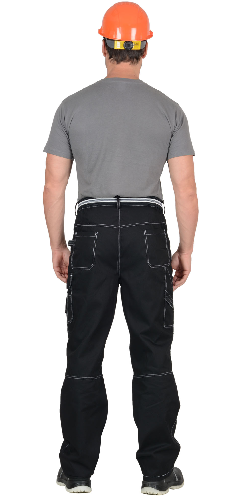Брюки прямые, на притачном поясе, с застёжкой спереди на молния, с боковыми внутренними карманами, с часовым карманом; на задних половинках с отрезной кокеткой, двумя накладными карманами и карманами под инструменты. В брюках предусмотрен СВ кант для обозначения сигнальной видимости.