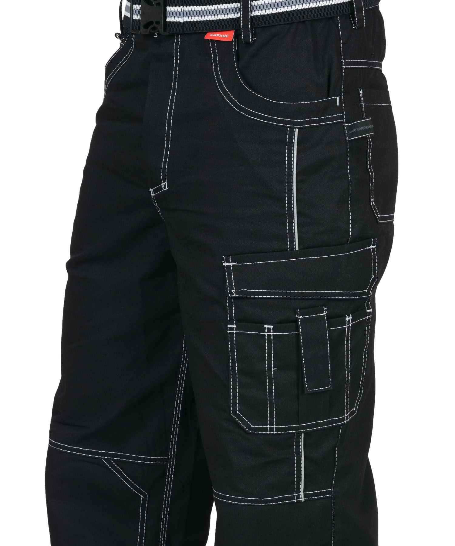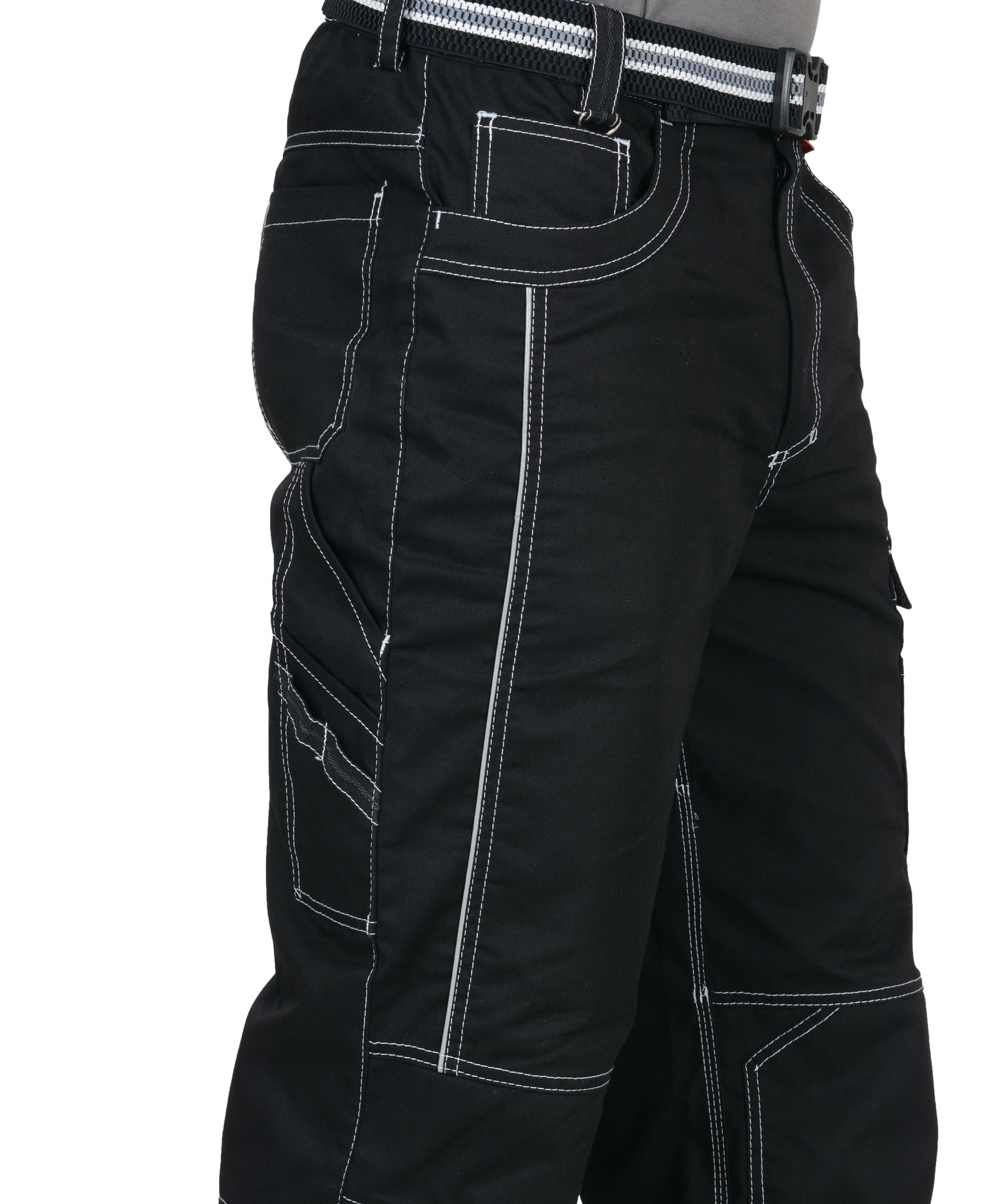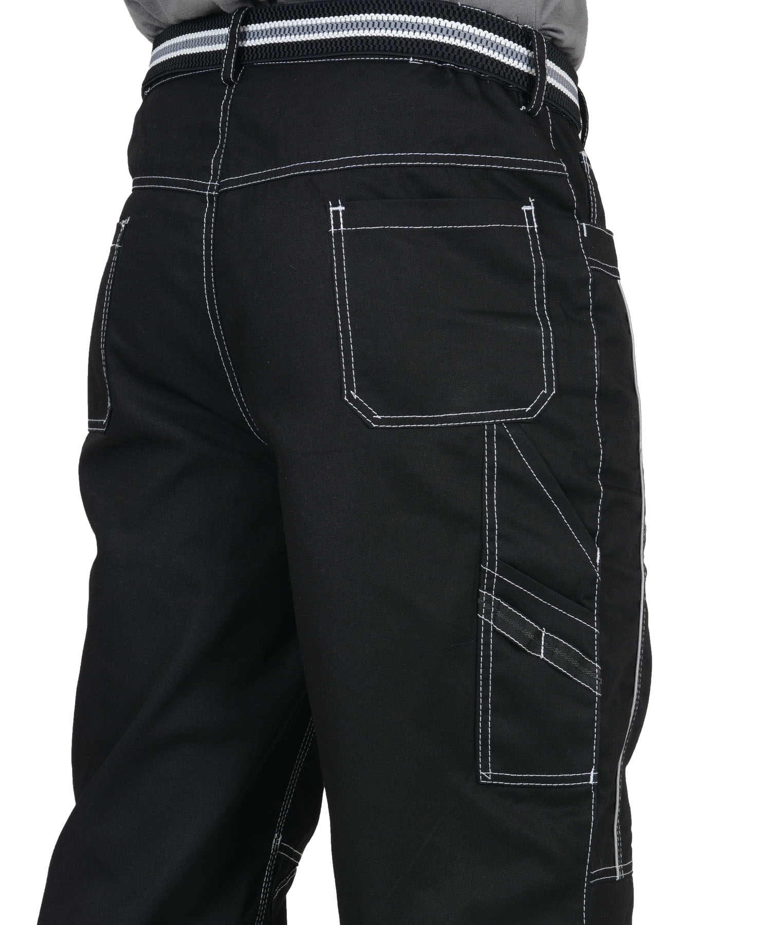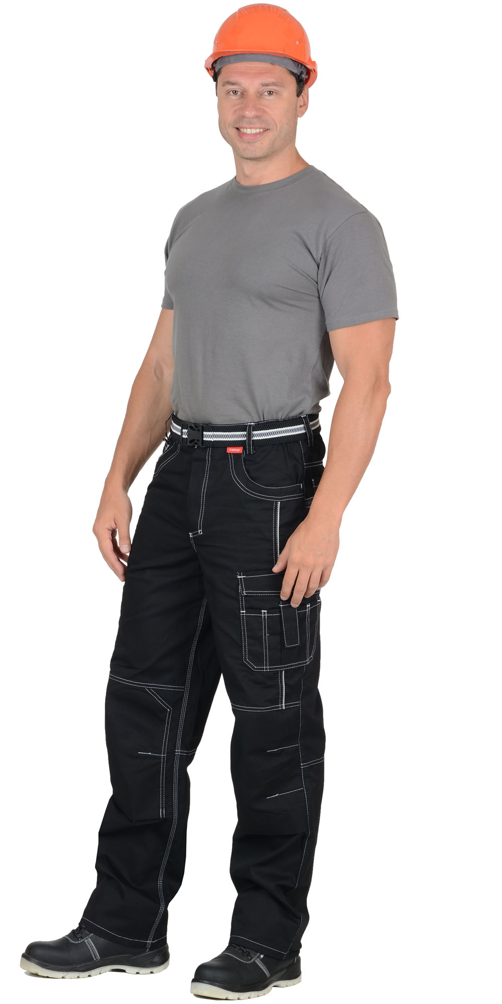 Брюки прямые, на притачном поясе, с застёжкой спереди на молния, с боковыми внутренними карманами, с часовым карманом; на задних половинках с отрезной кокеткой, двумя накладными карманами и карманами под инструменты. В брюках предусмотрен СВ кант для обозначения сигнальной видимости.