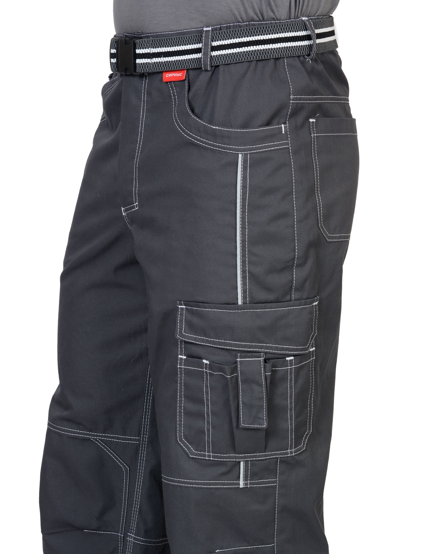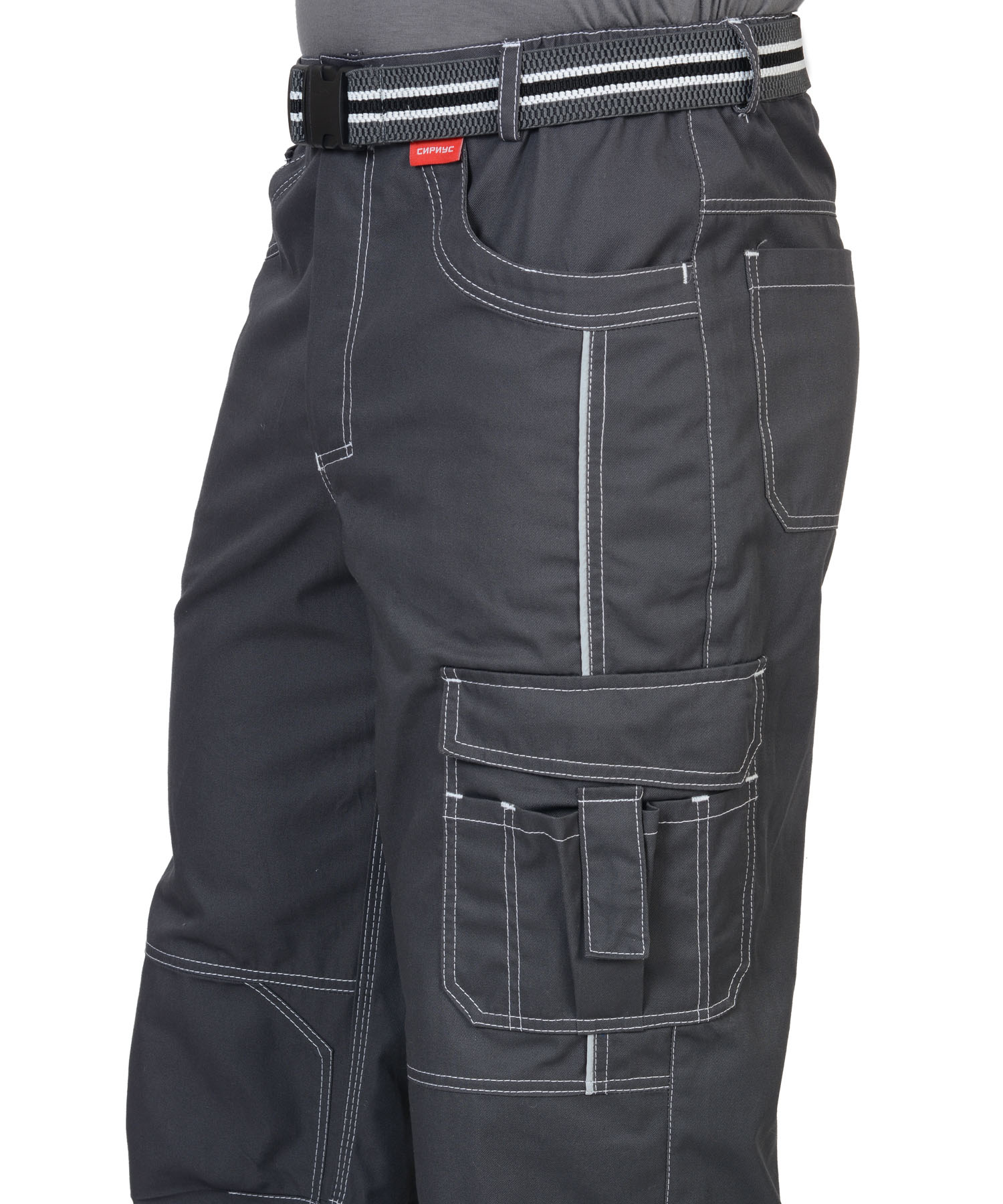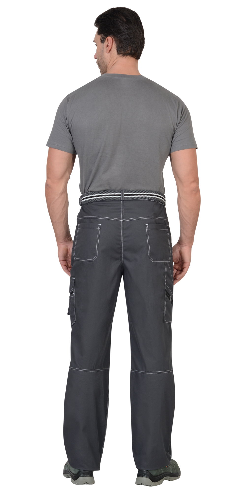 Брюки прямые, на притачном поясе, с застёжкой спереди на молния, с боковыми внутренними карманами, с часовым карманом; на задних половинках с отрезной кокеткой, двумя накладными карманами и карманами под инструменты. В брюках предусмотрен СВ кант для обозначения сигнальной видимости.