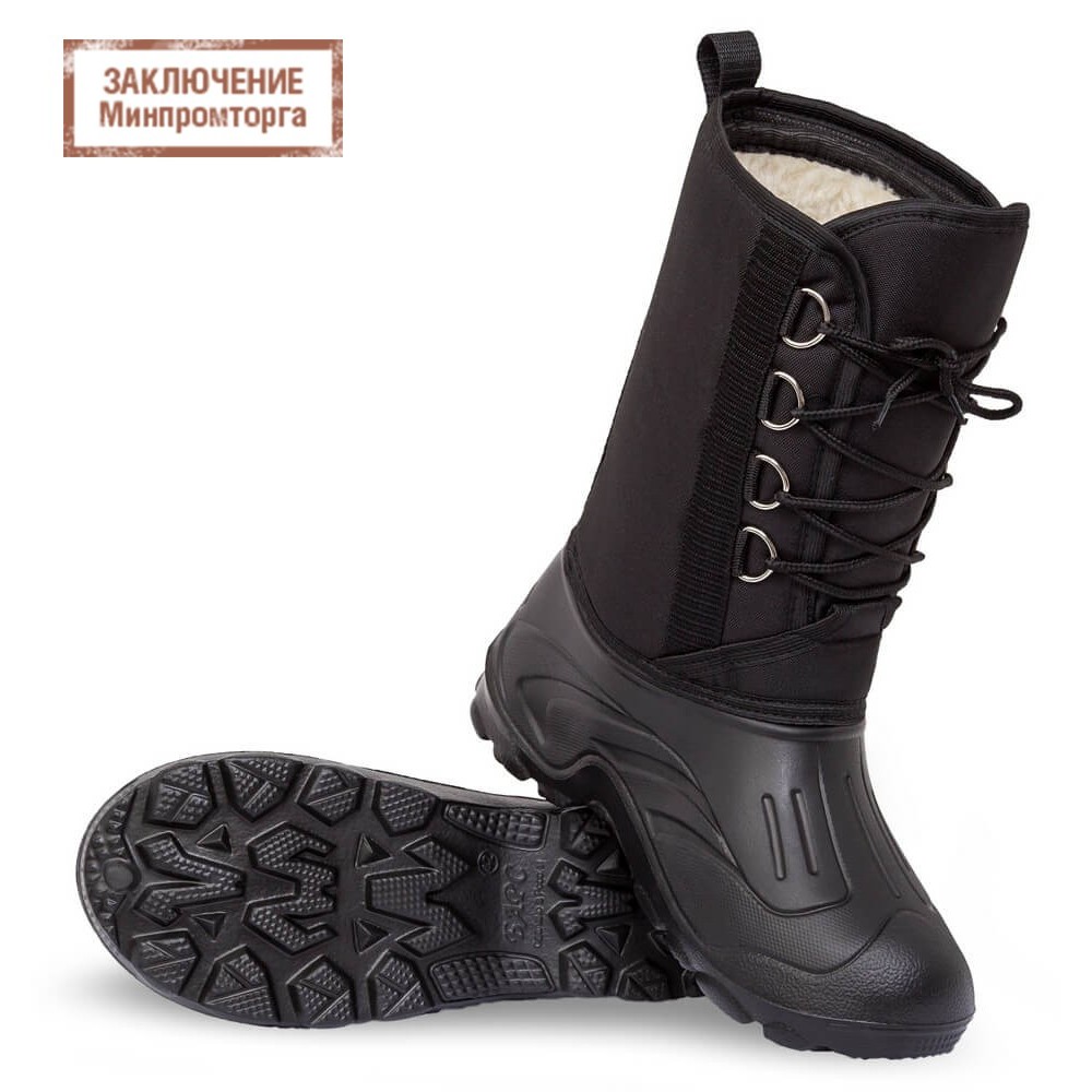 Материал сапог абсолютно водонепроницаем. Удобная колодка обеспечивает комфортную носку обуви. Верх изготовлен из водоотталкивающей ткани Оксфорд, фиксируется на ноге с помощью шнурка. Низ изготовлен из материала ЭВА, обладающим нескользящим эффектом.