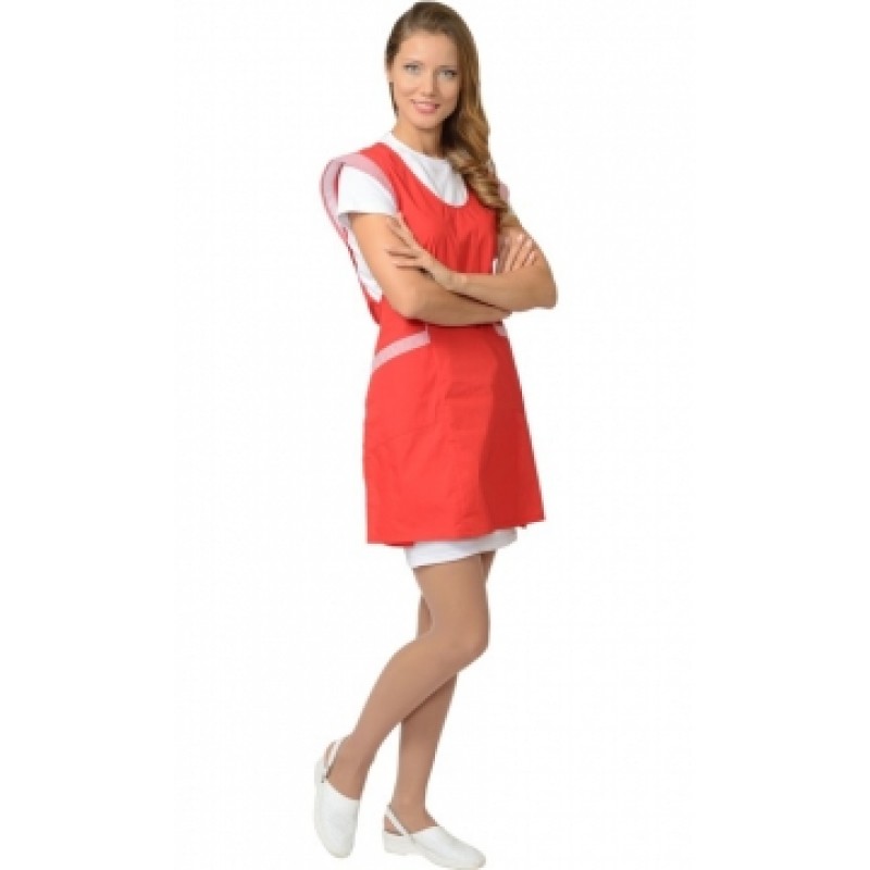 Фартук-сарафан "Веста" красный с полоской (ЧЗ)