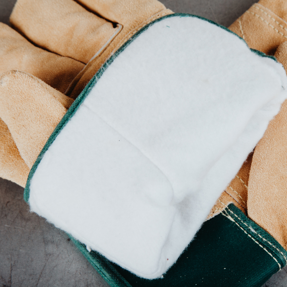 Накладка из спилка на тыльной стороне перчатки для усиленной защиты;