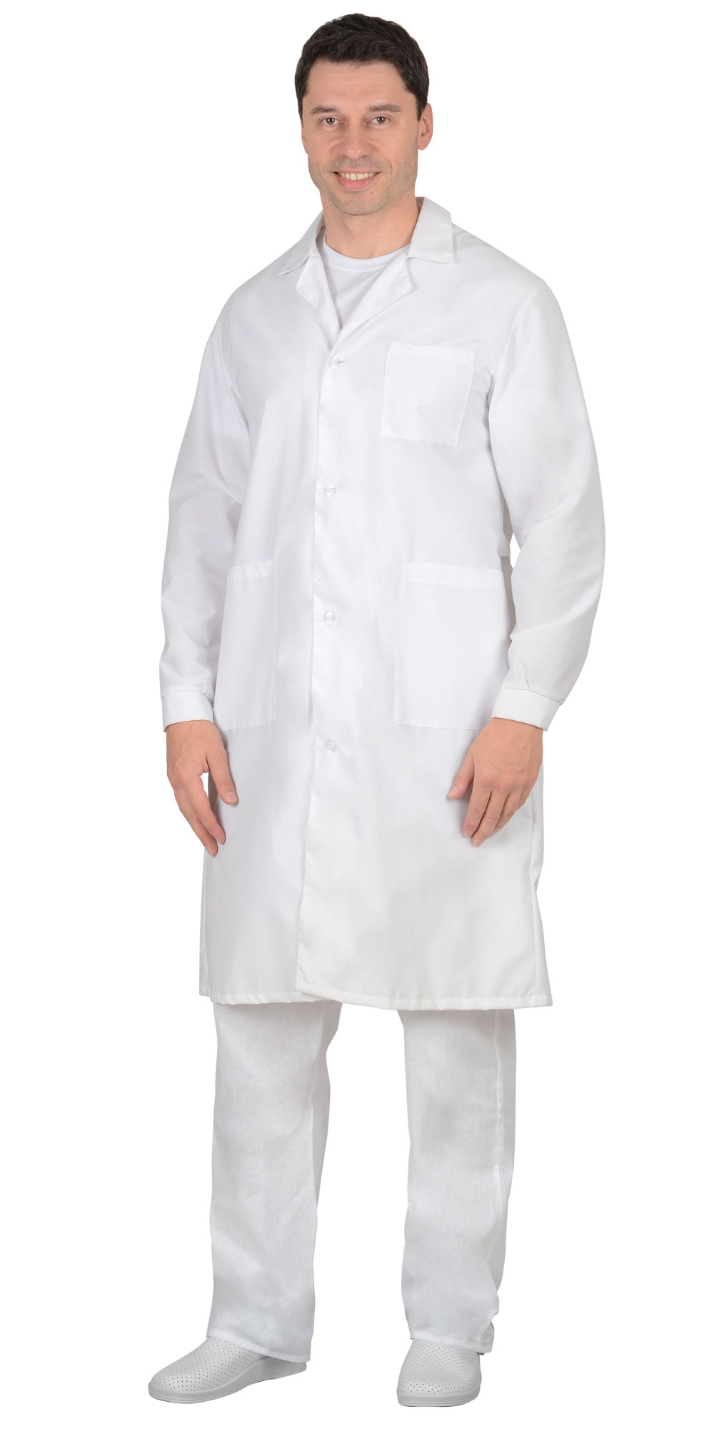 Халат х/б бязь, мужской белый СИРИУС