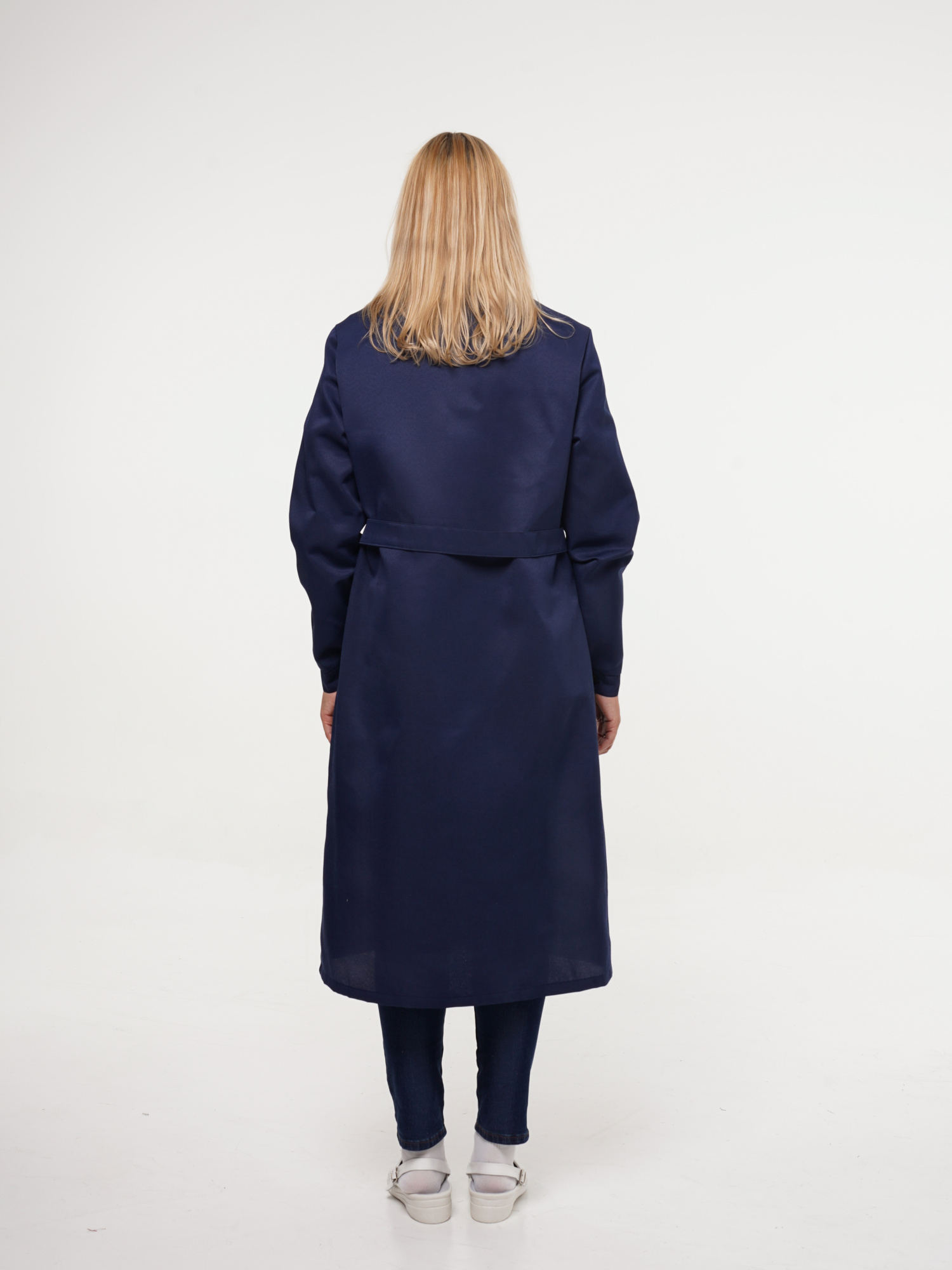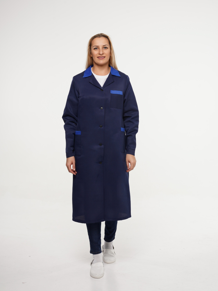 Халат рабочий женский №205 тёмно-синий с васильковым (ЧЗ) (136-140/182-188)
