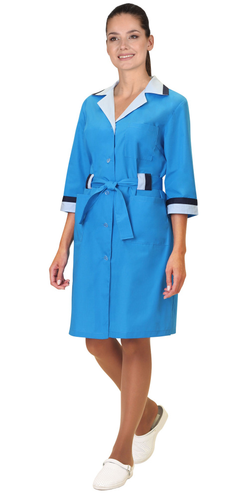 Халат "СИРИУС-ФЛОРА" женский со светло-голубым воротником (ЧЗ)