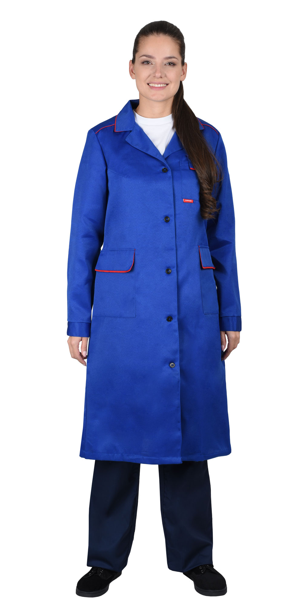Халат "ТЕХНИК" женский васильковый с красным (ЧЗ) (120-124/158-164)