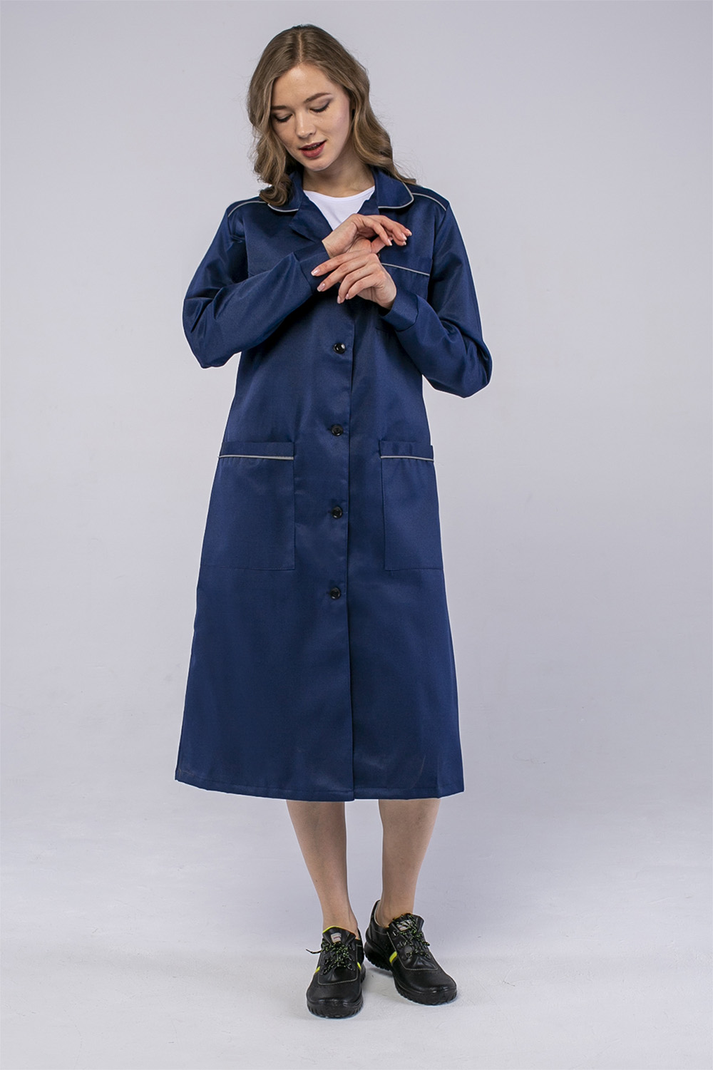 Халат женский ИТР (тк.Смесовая,210), т.синий Факел (аналог Технолог) ( 88-92/170-176)