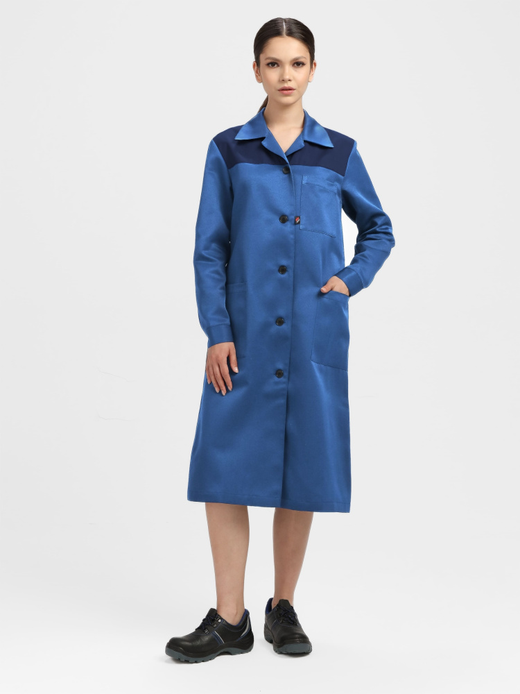 Халат женский Лигор (тк.Смесовая,210), васильковый/т.синий (ЧЗ) (112-116/170-176)