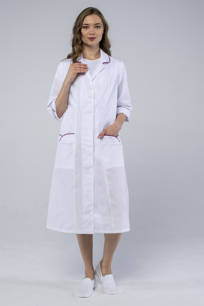 Халат женский Римма (тк.ТиСи), белый/брусничный (ЧЗ) ( 96-100/182-188)
