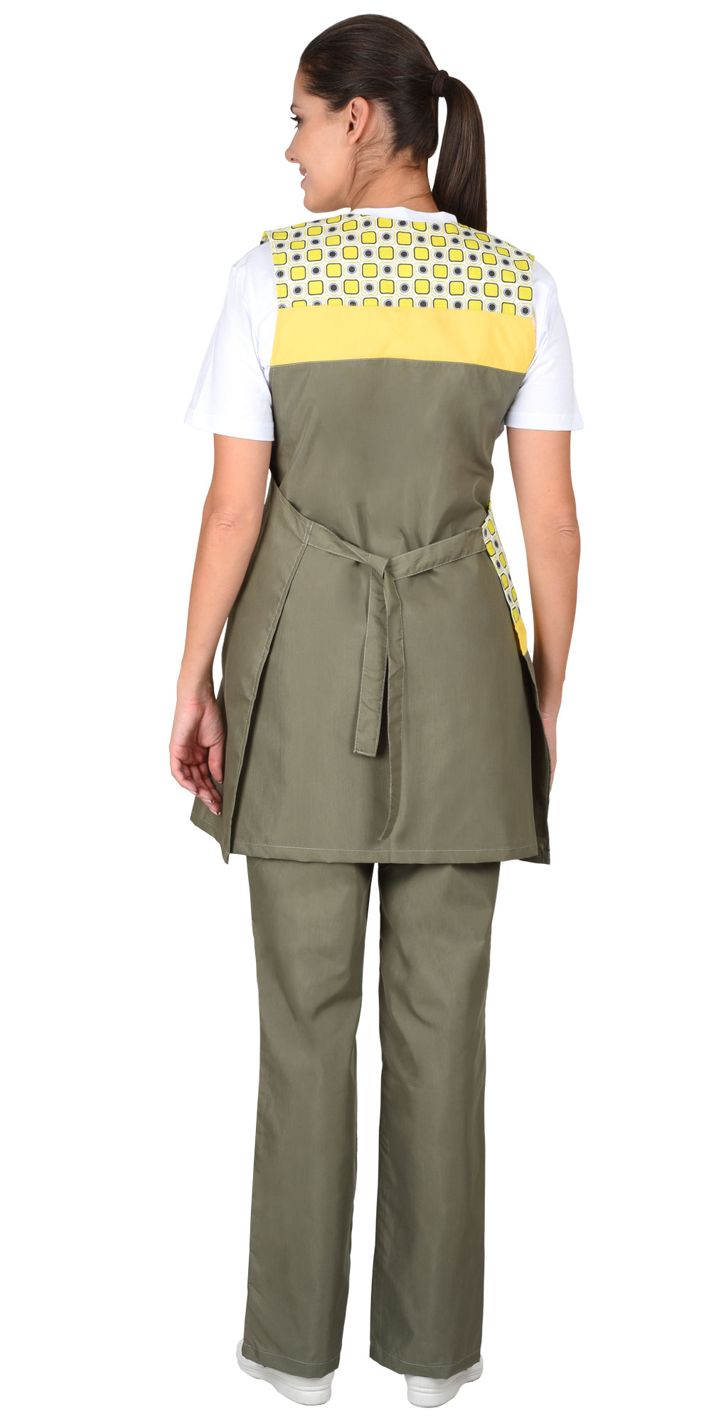 Комплект "ГАЛАТЕЯ" женский: фартук, брюки оливковый с желтым (ЧЗ)