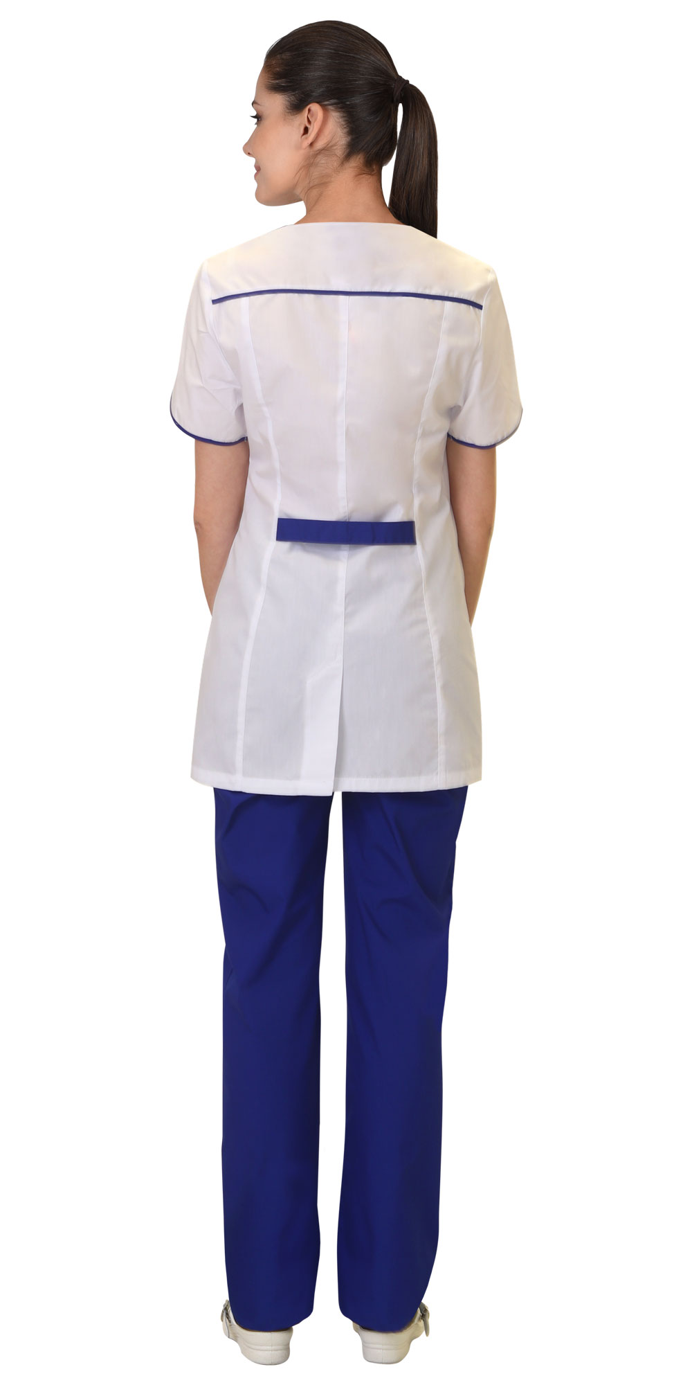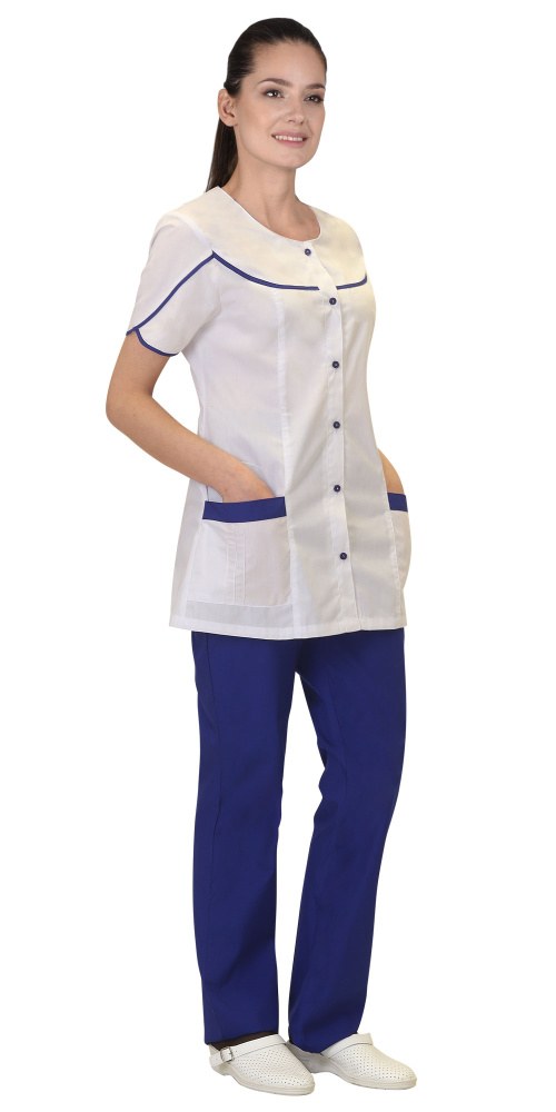Костюм "БЕЛЛА" женский: блуза, брюки, белый с васильковым (ЧЗ) (112-116/158-164)