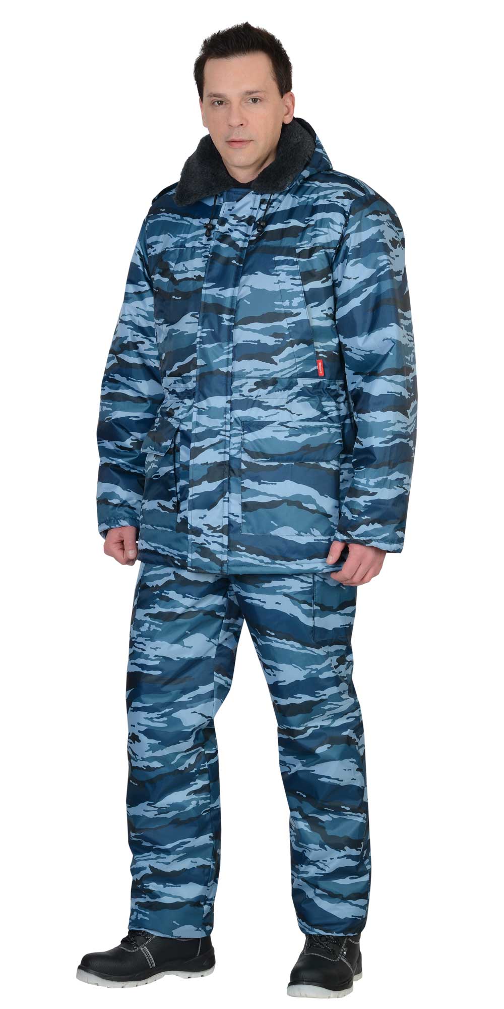 Костюм "Безопасность" (охрана/охранник) зимний: куртка, п/комб. КМФ серый вихрь (ЧЗ) (120-124/170-176)