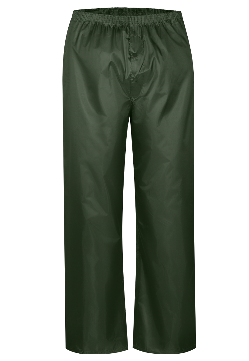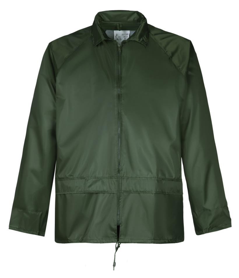Влагозащитный костюм  (комплект влагостойкий куртка+брюки), для защиты от атмосферных воздействий: дождя, ветра, пыли. Куртка на молнии и внутренним ветрозащитным клапаном, с капюшоном (прячется в воротник на молнии), вентиляционными отверстиями под рукавами и по спинке (с сеткой) и двумя карманами под общей планкой, муфты в рукавах, регулировочная тесьма на поясе. Брюки на резинке, два кармана (сквозные, для доступа к карманам одежды), гульфик на кнопках, ширина низа брюк регулируется кнопками. Комплект поставляется в индивидуальной многоразовой упаковке. Материал - ПВХ усиленный полиэстером (полиэстеровыми волокнами- нитями) с толщиной листа 0,18 мм, все соединения проклеены ПВХ лентой, цвет зеленый. Рекомендуется для использования поверх верхней одежды в дождливую погоду во всех отраслях промышленности, на транспорте и сельском хозяйстве  Размеры "европейские", соответствуют стандартам РФ: L, XL, 2XL, 3XL