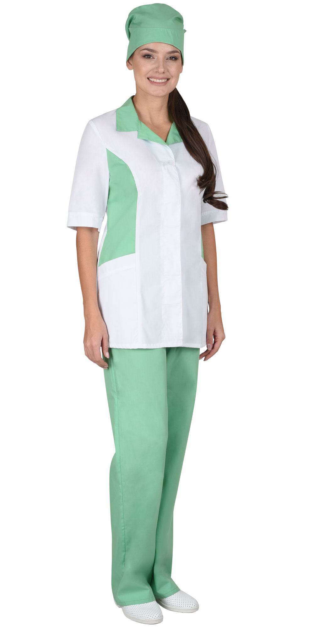 Костюм "Флоренция" женский: куртка, брюки, колпак белый с салатовым (ЧЗ)