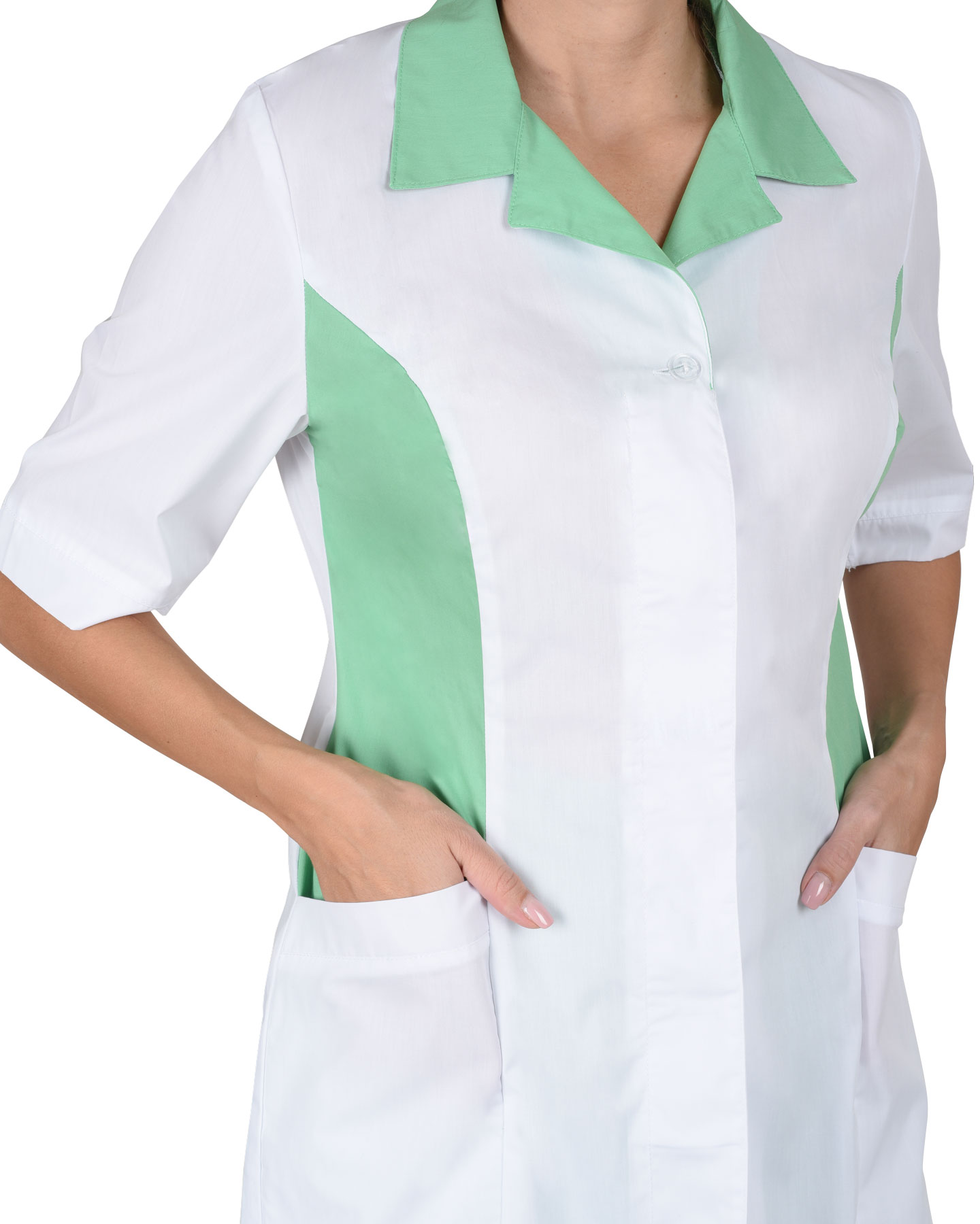Костюм "Флоренция" женский: куртка, брюки, колпак белый с салатовым (ЧЗ) (104-108/158-164)