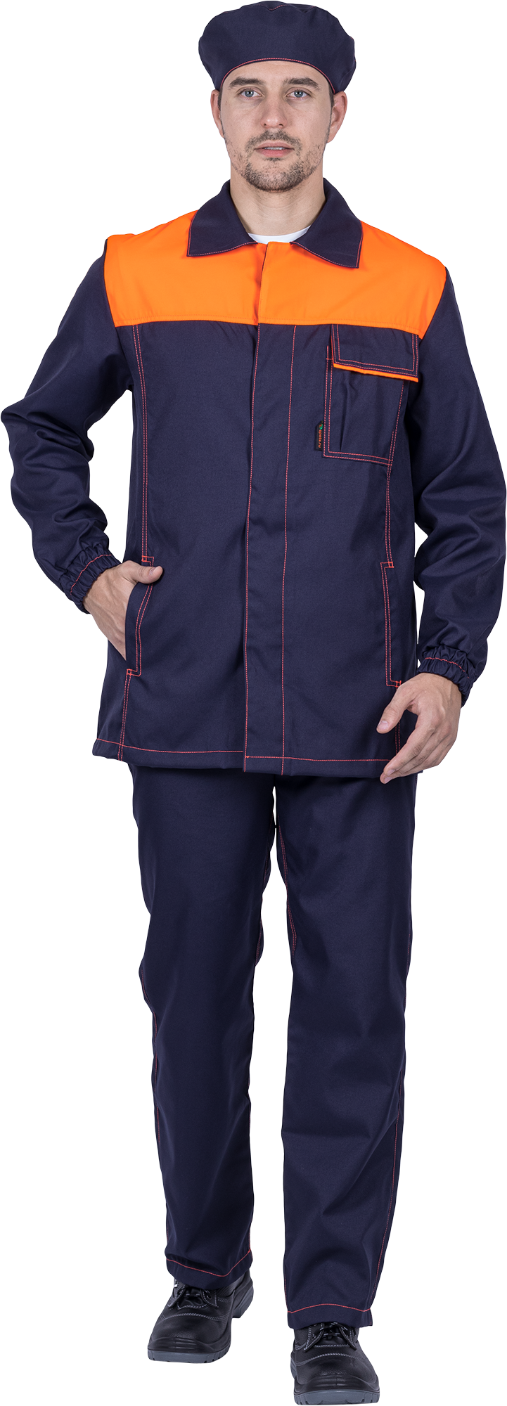 Костюм ХИМОС противокислотный, куртка, брюки, берет, темно-синий/оранжевый ( 96-100/170-176)