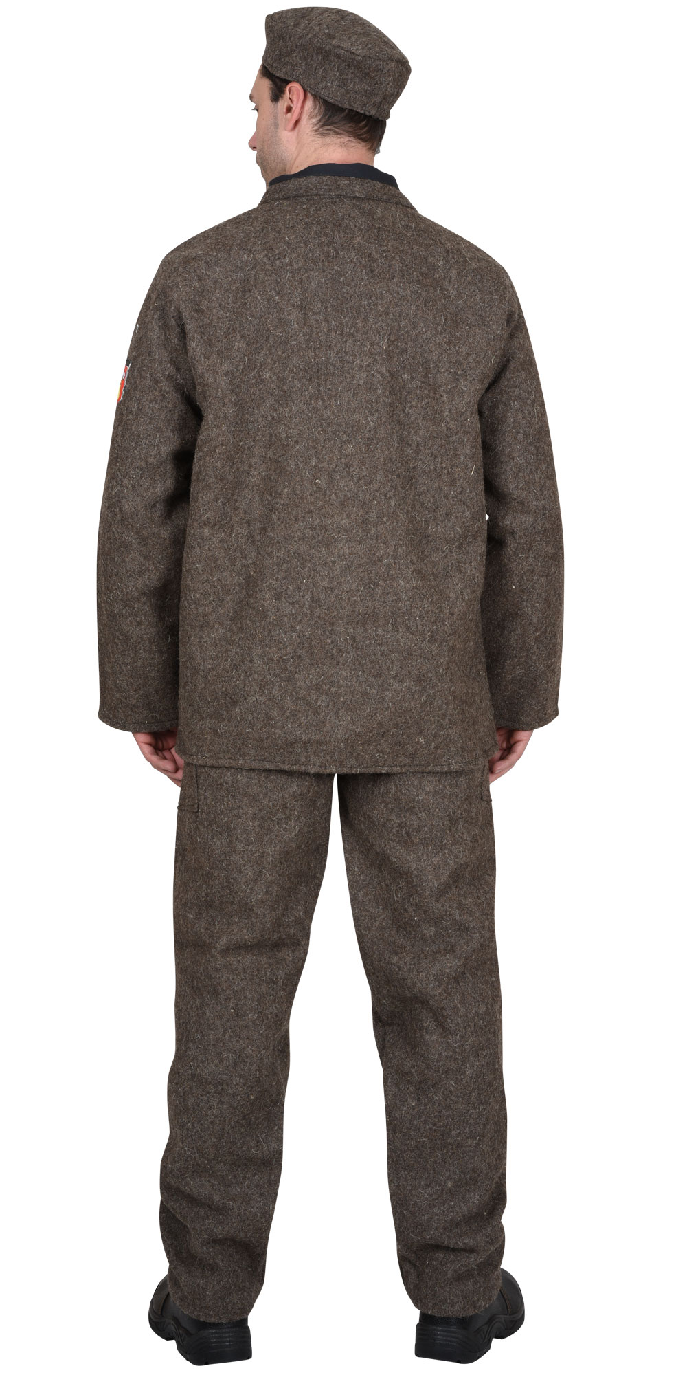 Сукно КЩС, пл. 760 г/кв.м, серое. Куртка с пот. застёжкой на пуговицы, отложным воротником, карманами. Брюки с застёжкой гульфика на пуговицы. Размерный ряд: с 88-92 по 120-124