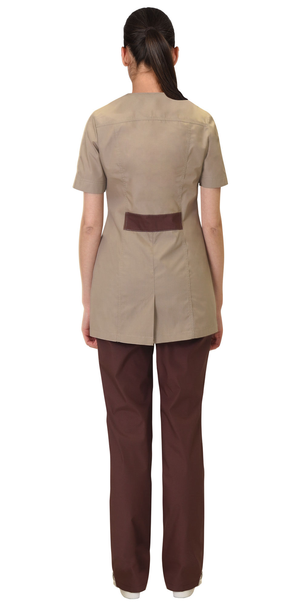 Костюм "МЕДЕЯ" женский: блуза, брюки, бежевый с шоколадным (ЧЗ) (112-116/170-176)