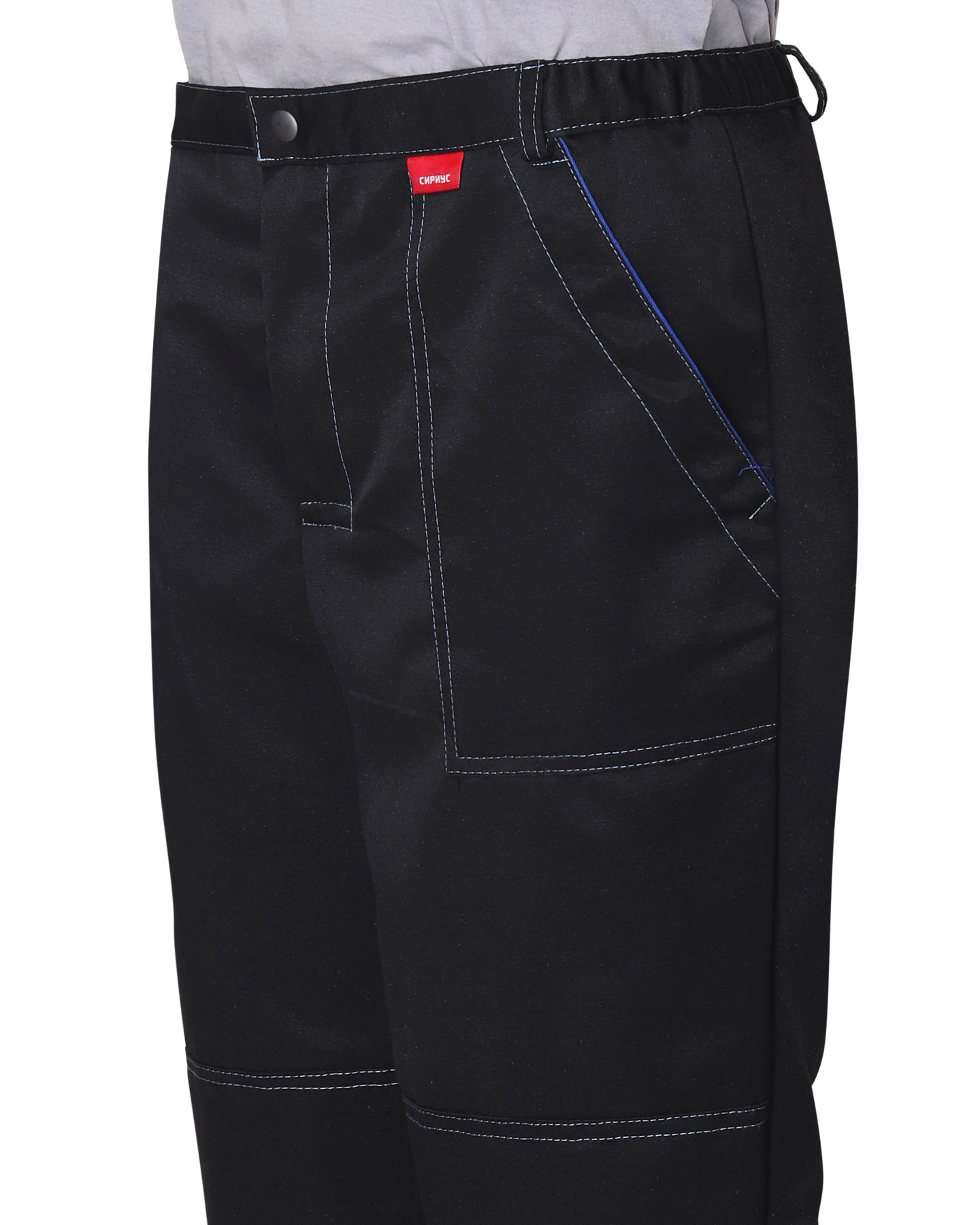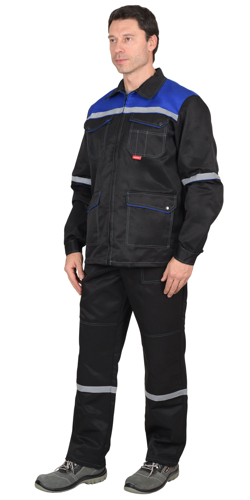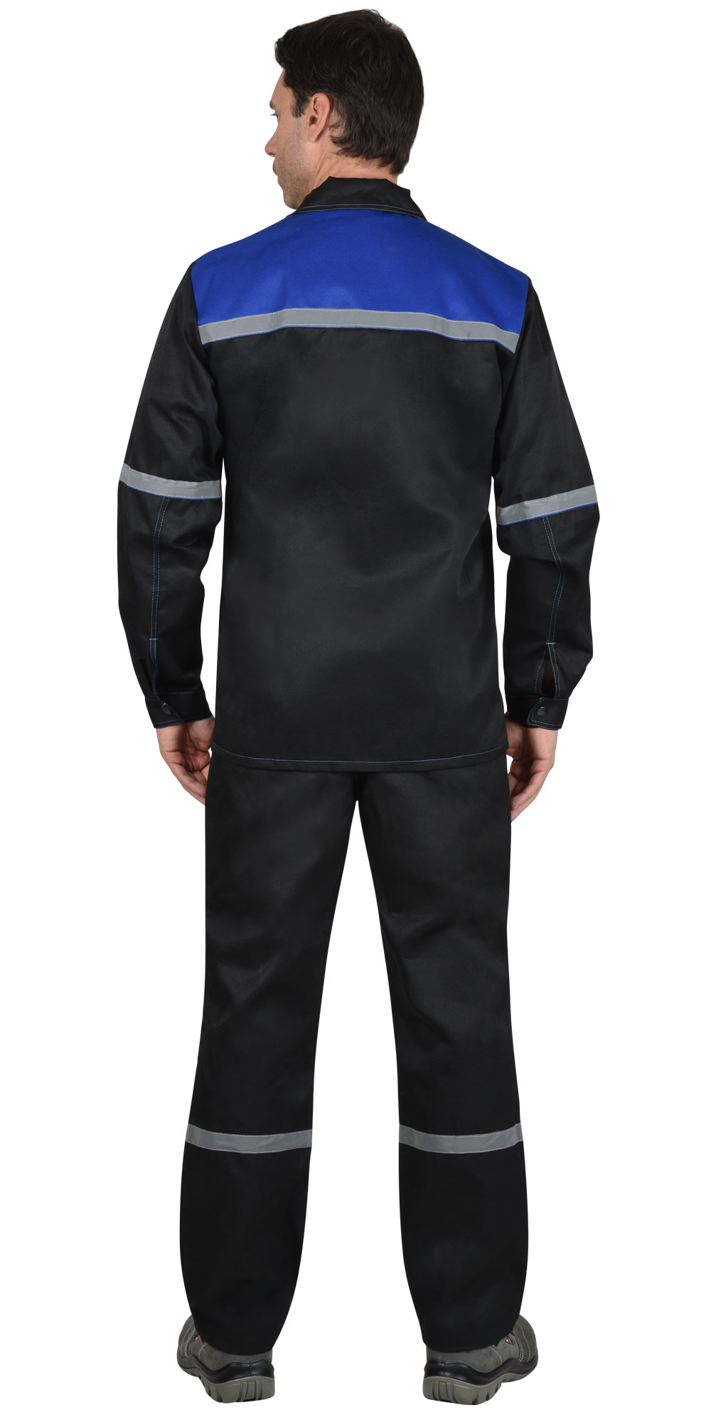 Костюм "МЕХАНИК": куртка, брюки черный с васильковым и СОП 25мм (ЧЗ)