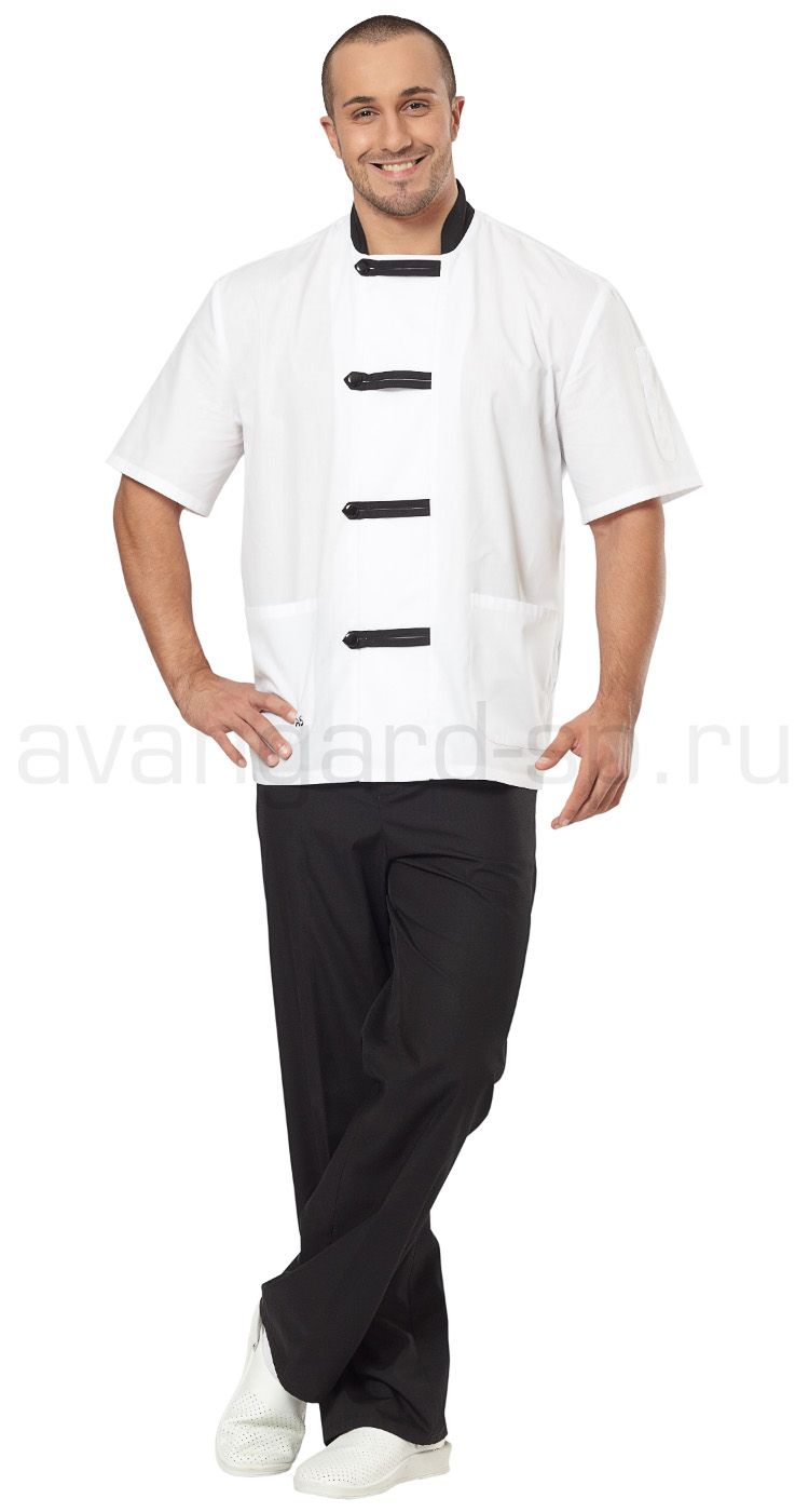 Костюм повара мужской "Азия" (цв. белый + черный) (ЧЗ) (120-124/182-188)