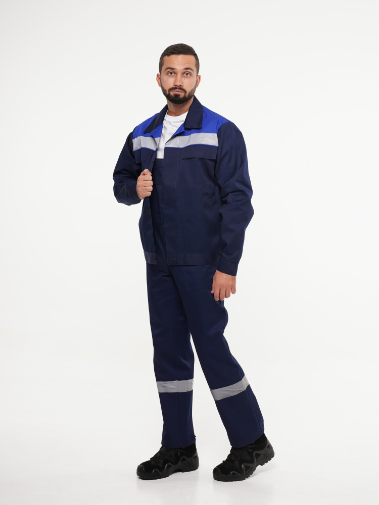 Костюм рабочий Сириус-Мастер №112 т.синий с васильковым (куртка, полукомбинезон) (ЧЗ) (120-124/158-164)