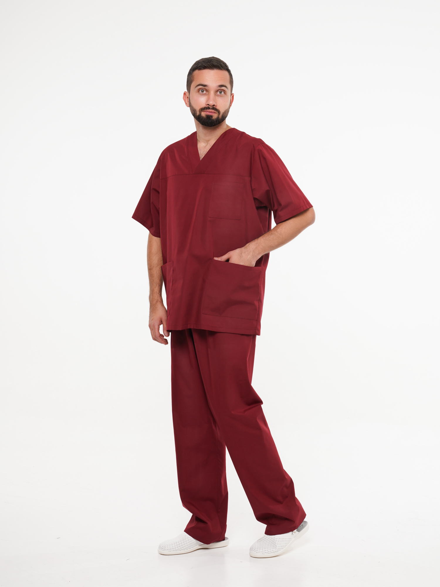 Костюм хирурга универсальный №104 блуза, брюки бордо (ЧЗ) ( 80-84/182-188)