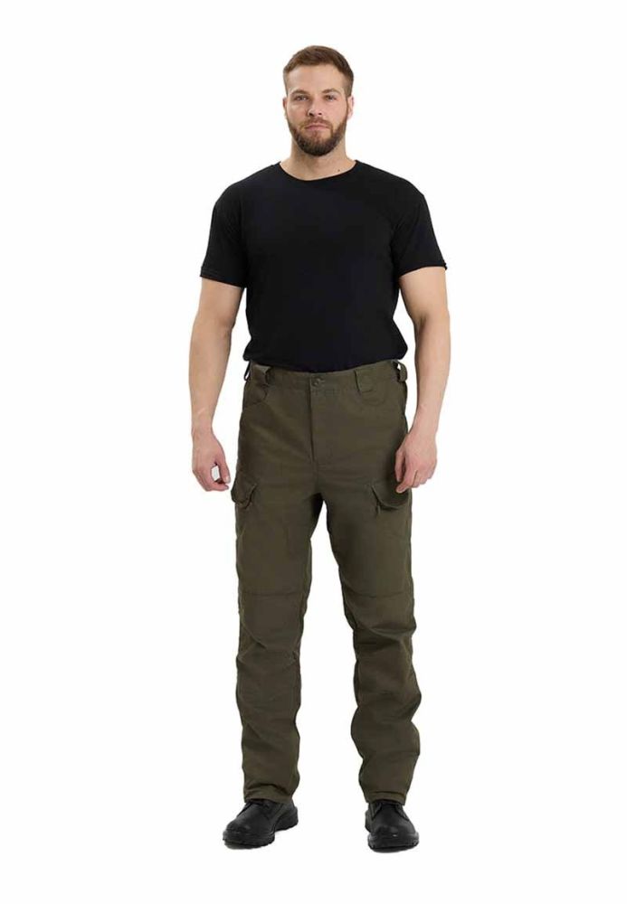 - задняя и передняя части брюк имеют эргономичный крой благодаря фигурными наколенникам со складками, подколенной вставкой и кокетки в области пояса;