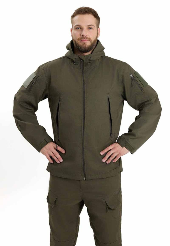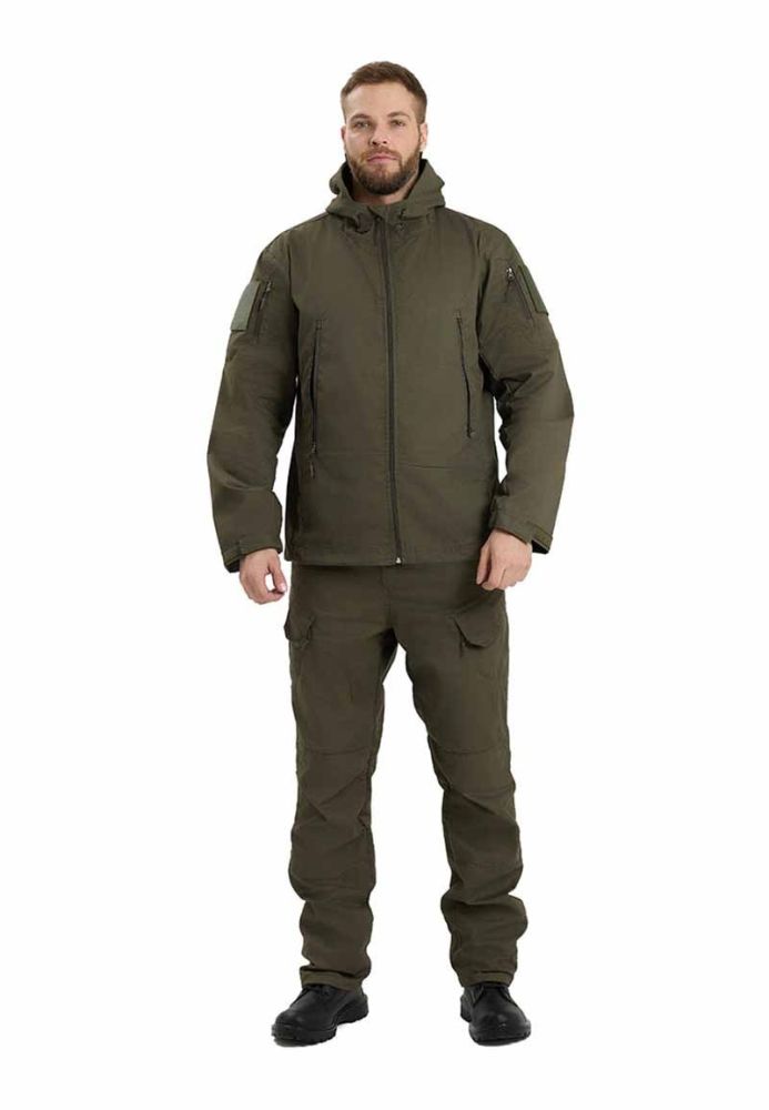 Универсальный мужской летний костюм состоит из куртки с капюшоном и брюк.