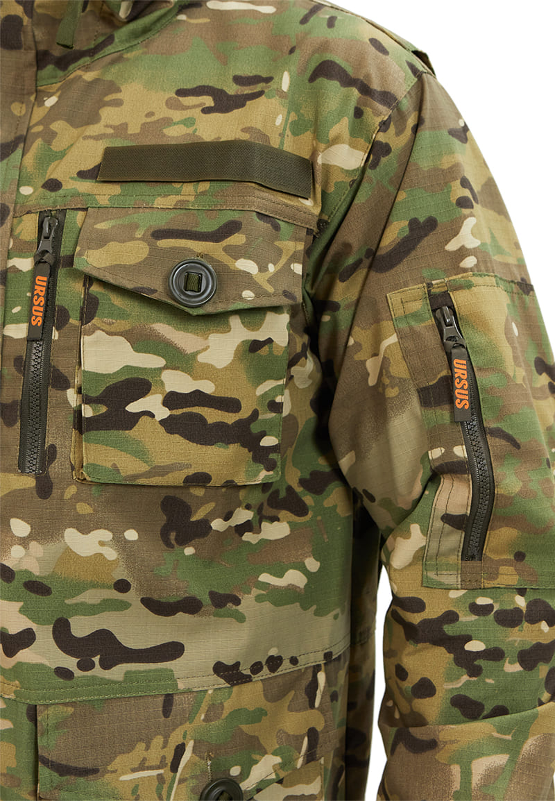 - На левой полочке расположена липучка для шеврона, прорезной вертикальный карман на молнии