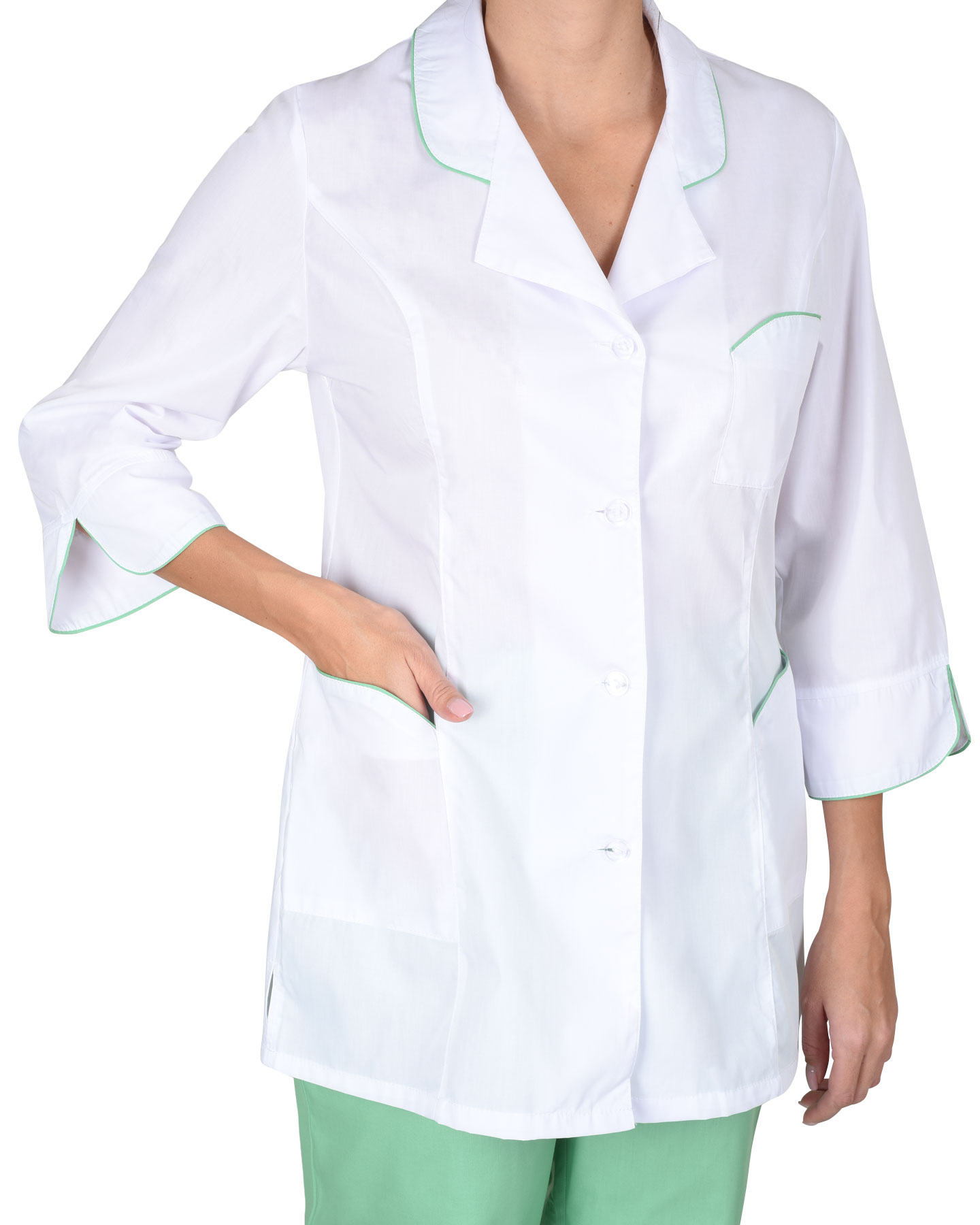 Костюм "Жасмин" женский: куртка, брюки, колпак белый с салатовым (ЧЗ) ( 88-92/170-176)
