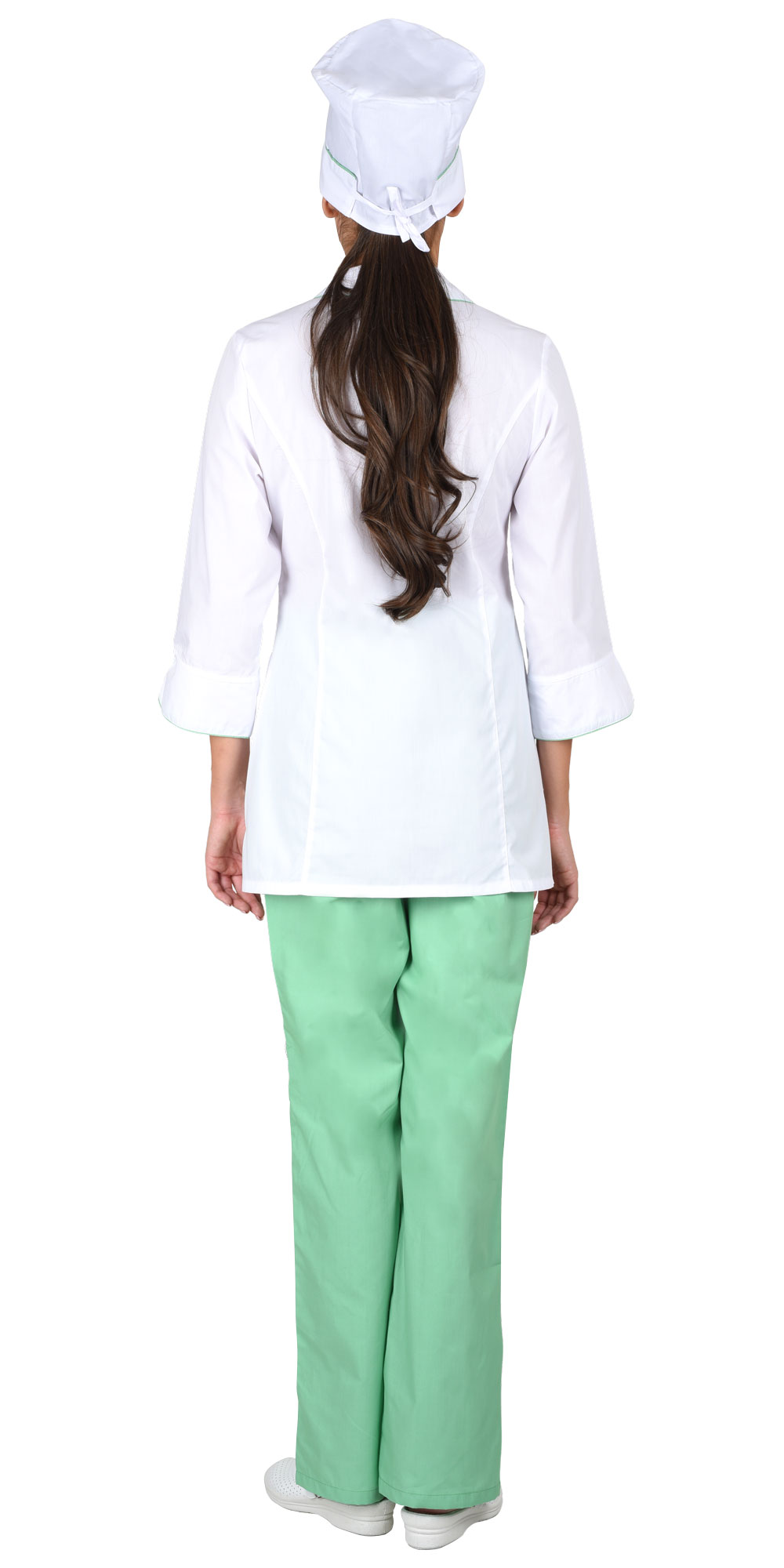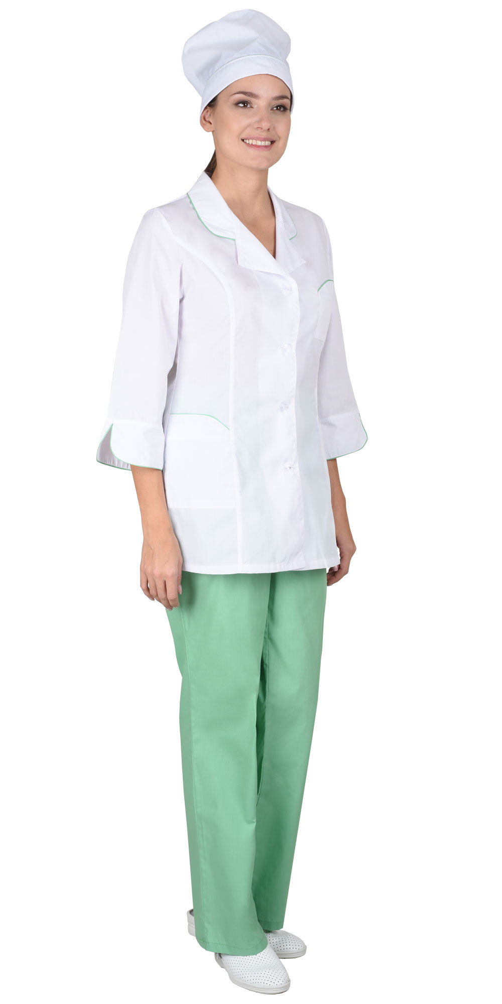 Костюм "Жасмин" женский: куртка, брюки, колпак белый с салатовым (ЧЗ) ( 88-92/158-164)