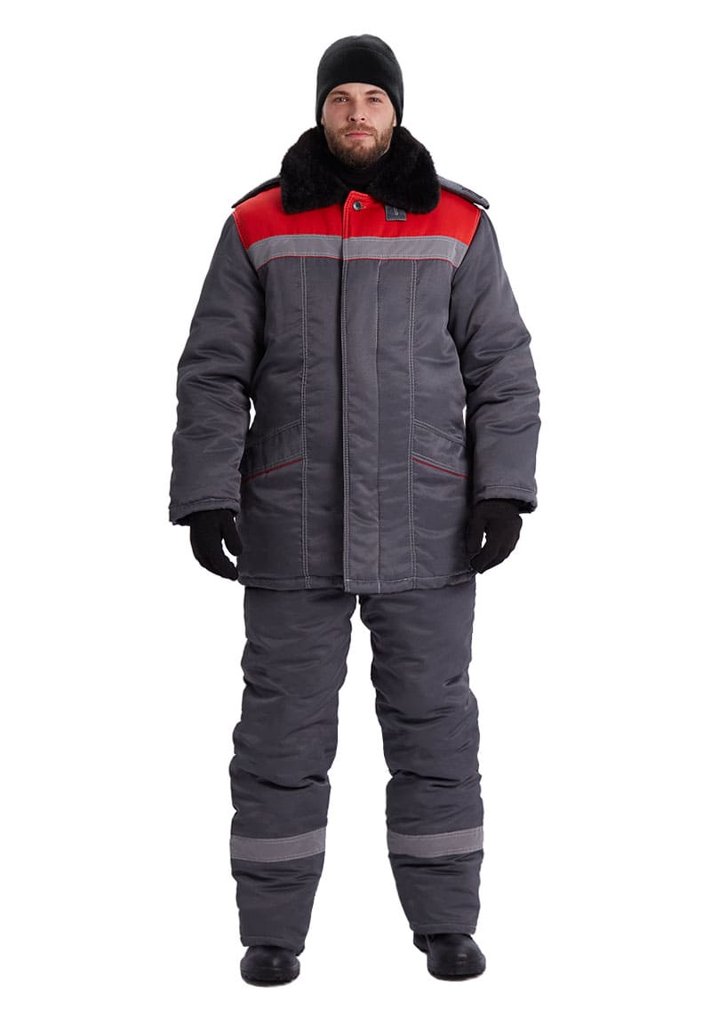 Костюм зимний "ВЬЮГА" куртка/полукомб. цвет: т.серый/красный URSUS (ЧЗ) (120-124/182-188)
