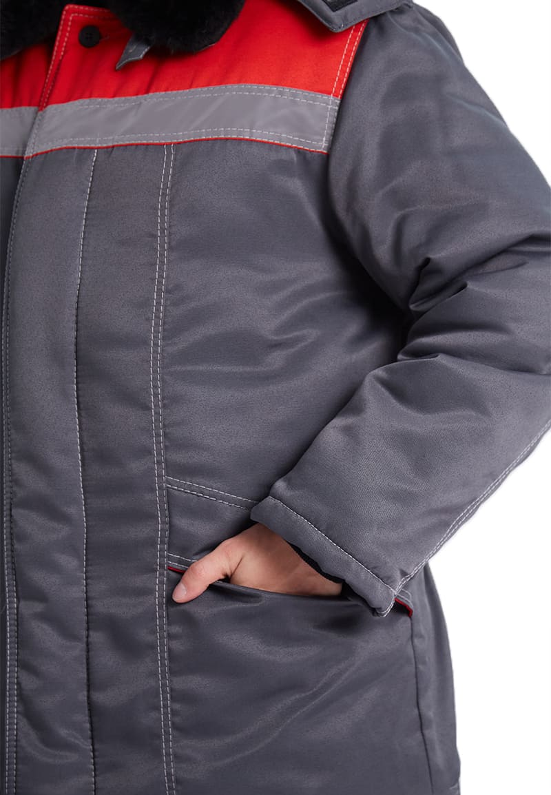 Костюм зимний "ВЬЮГА" куртка/полукомб. цвет: т.серый/красный URSUS (ЧЗ) (104-108/170-176)