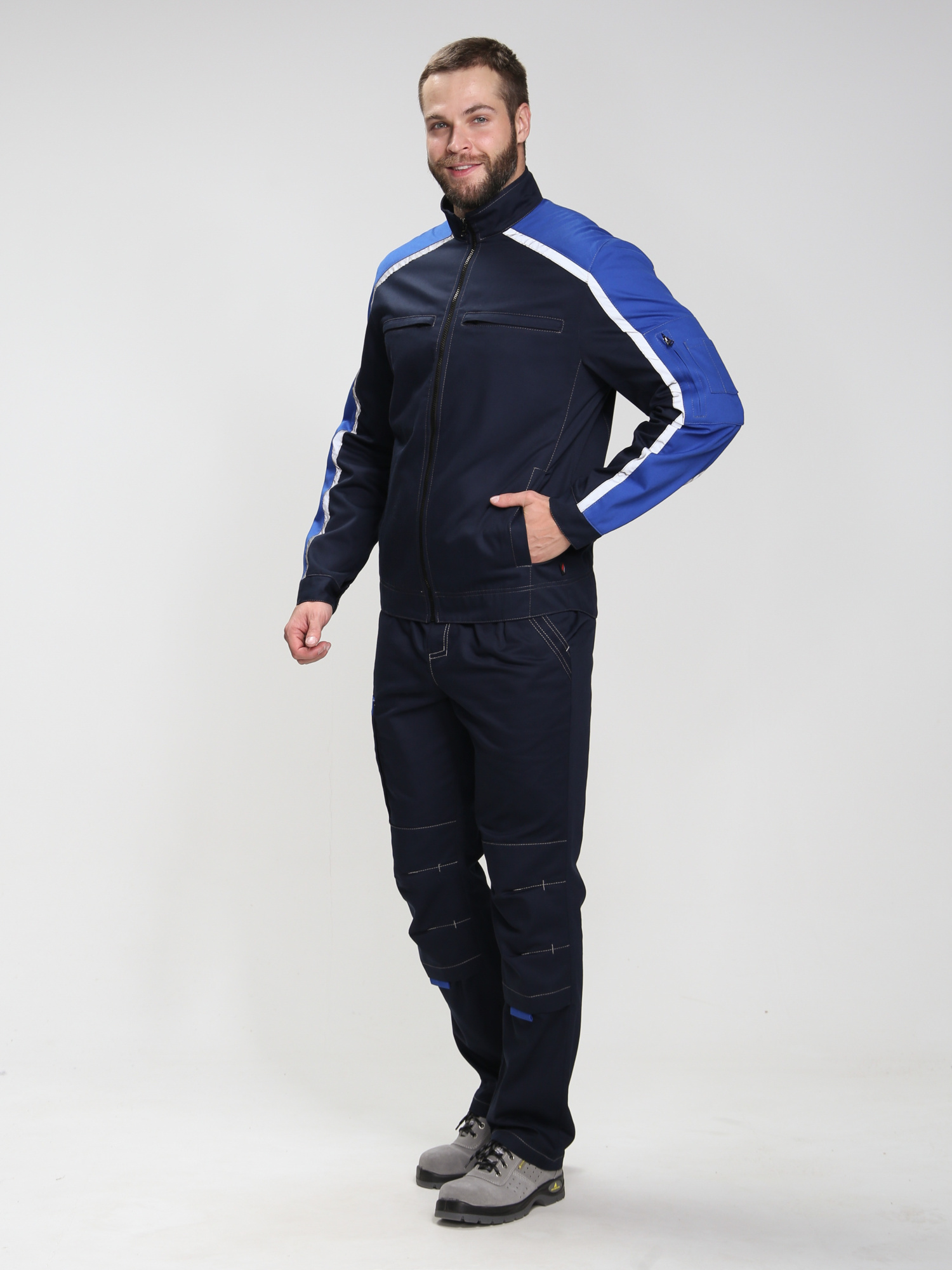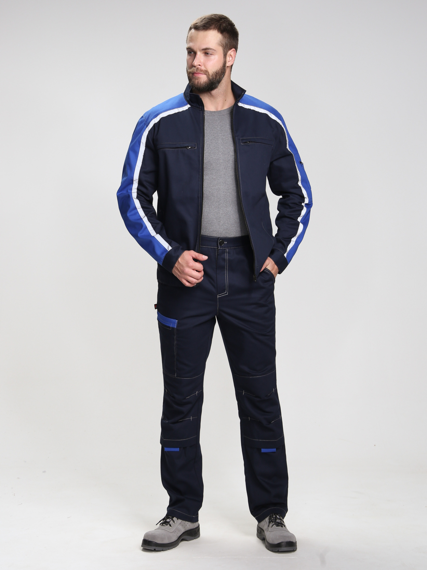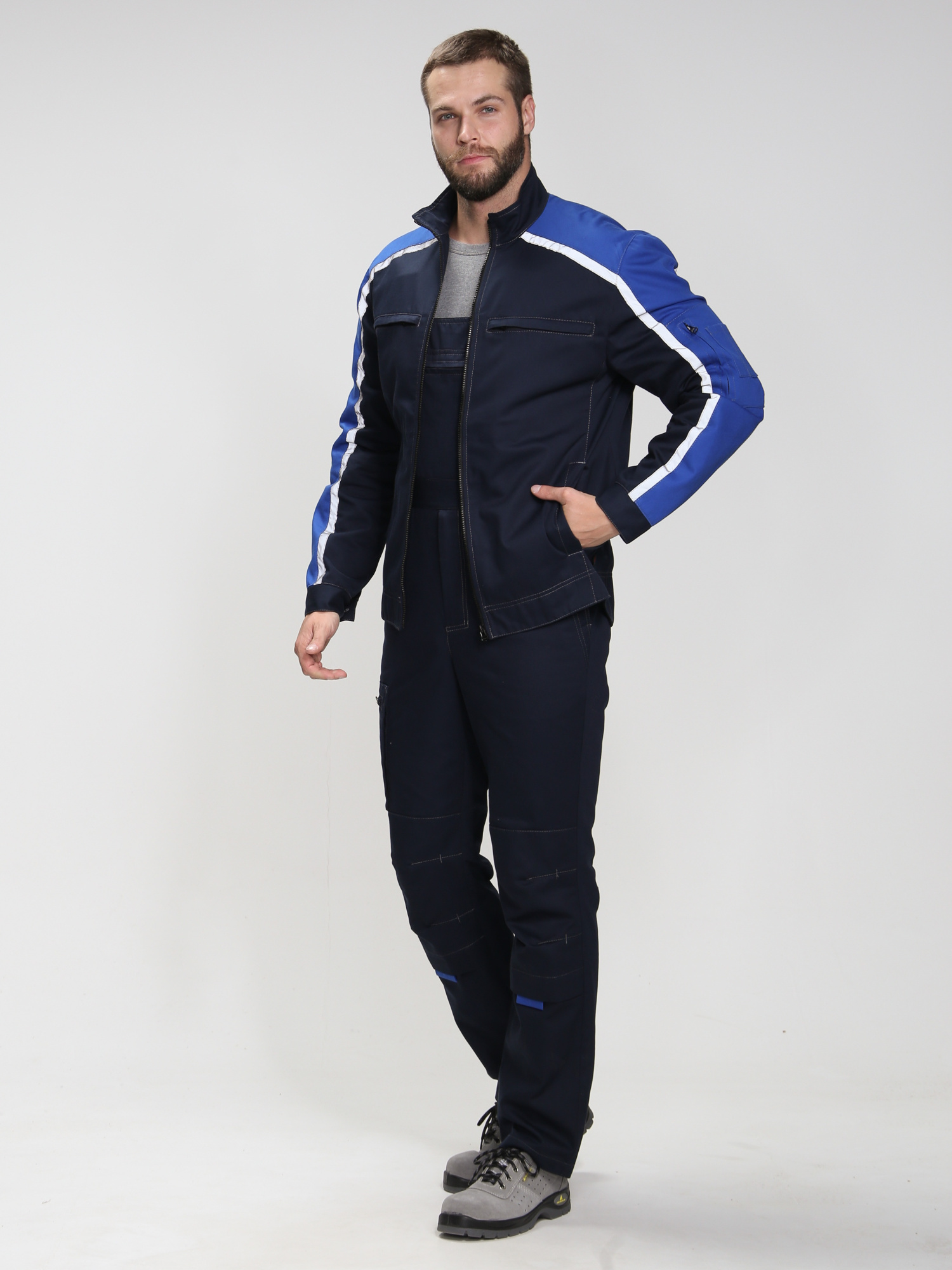 Дополните куртку Алькор брюками и полукомбинезоном из той же серии для создания полноценного защитного костюма, обеспечивающего комплексную защиту и единство стиля вашего рабочего персонала.