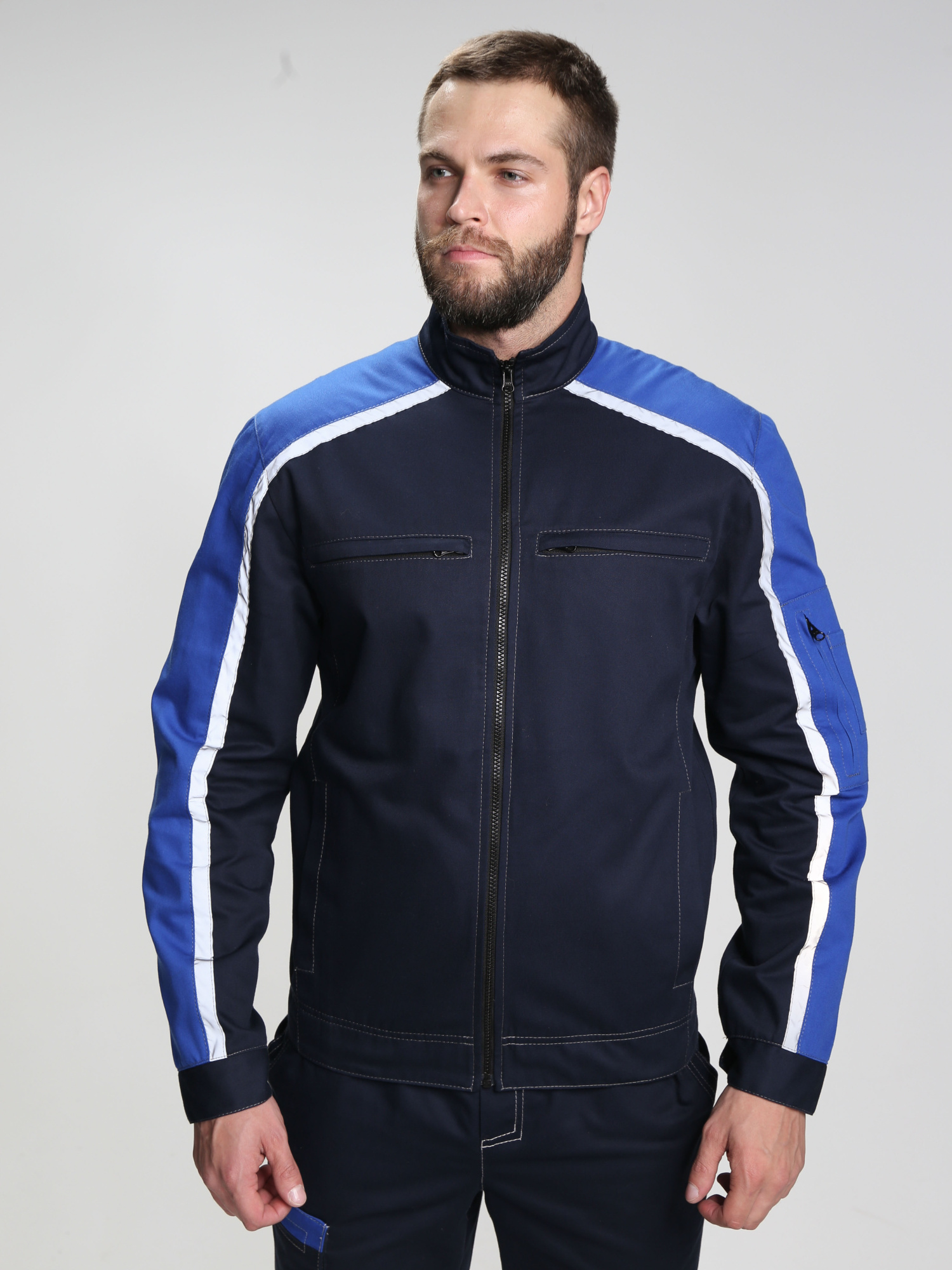 Куртка оснащена множеством карманов, включая прорезной карман с молнией на рукаве и специальную петлю под бейдж, что делает её максимально удобной для ежедневного использования.