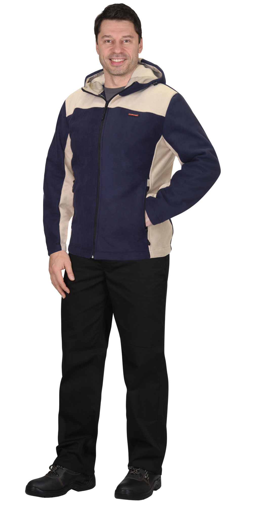 Куртка флисовая "ТЕХНО" (флис дублированный) т.синяя с бежевым