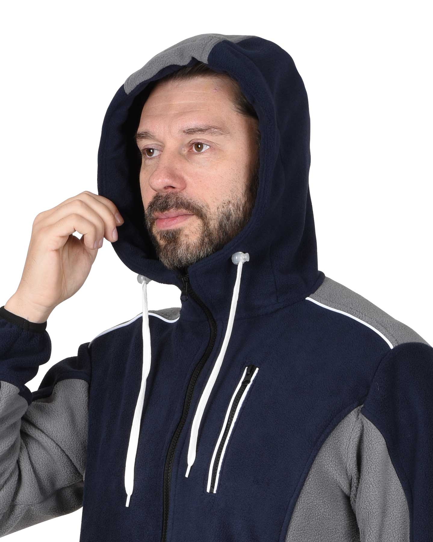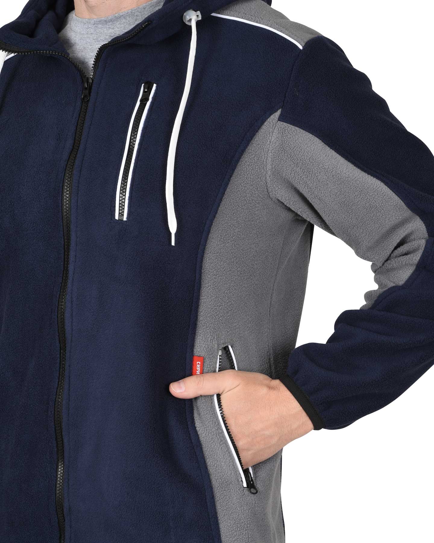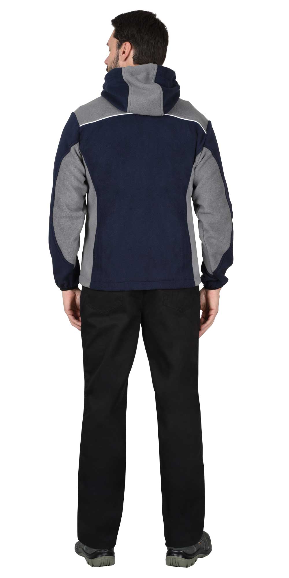 Куртка флисовая "Техно" т-синий с серым с капюшоном (ЧЗ)