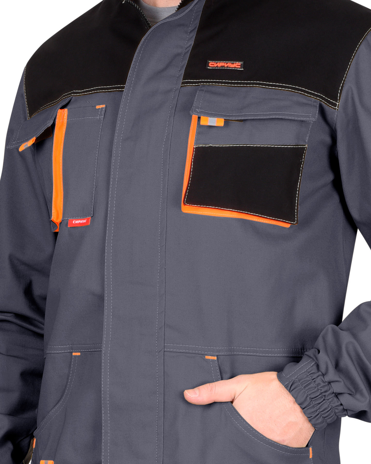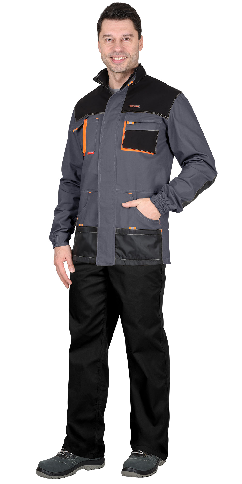 Куртка "МАНХЕТТЕН" длинная темно-серая с оранжевым и черным (ЧЗ)