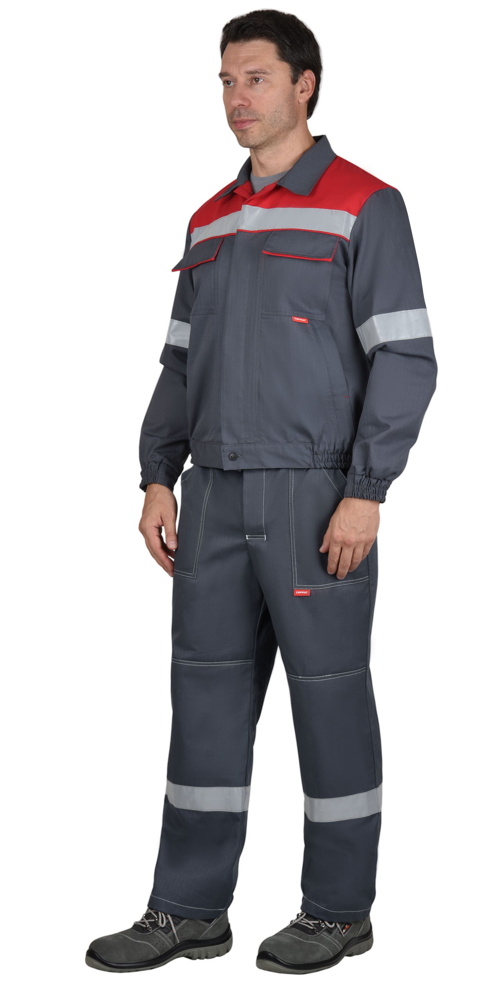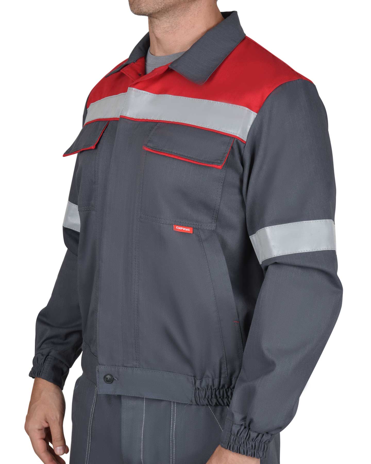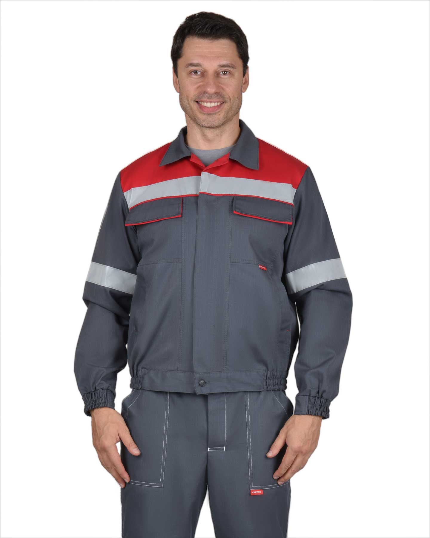Куртка "Мегион" короткая, серая с красным (ЧЗ) (120-124/182-188)
