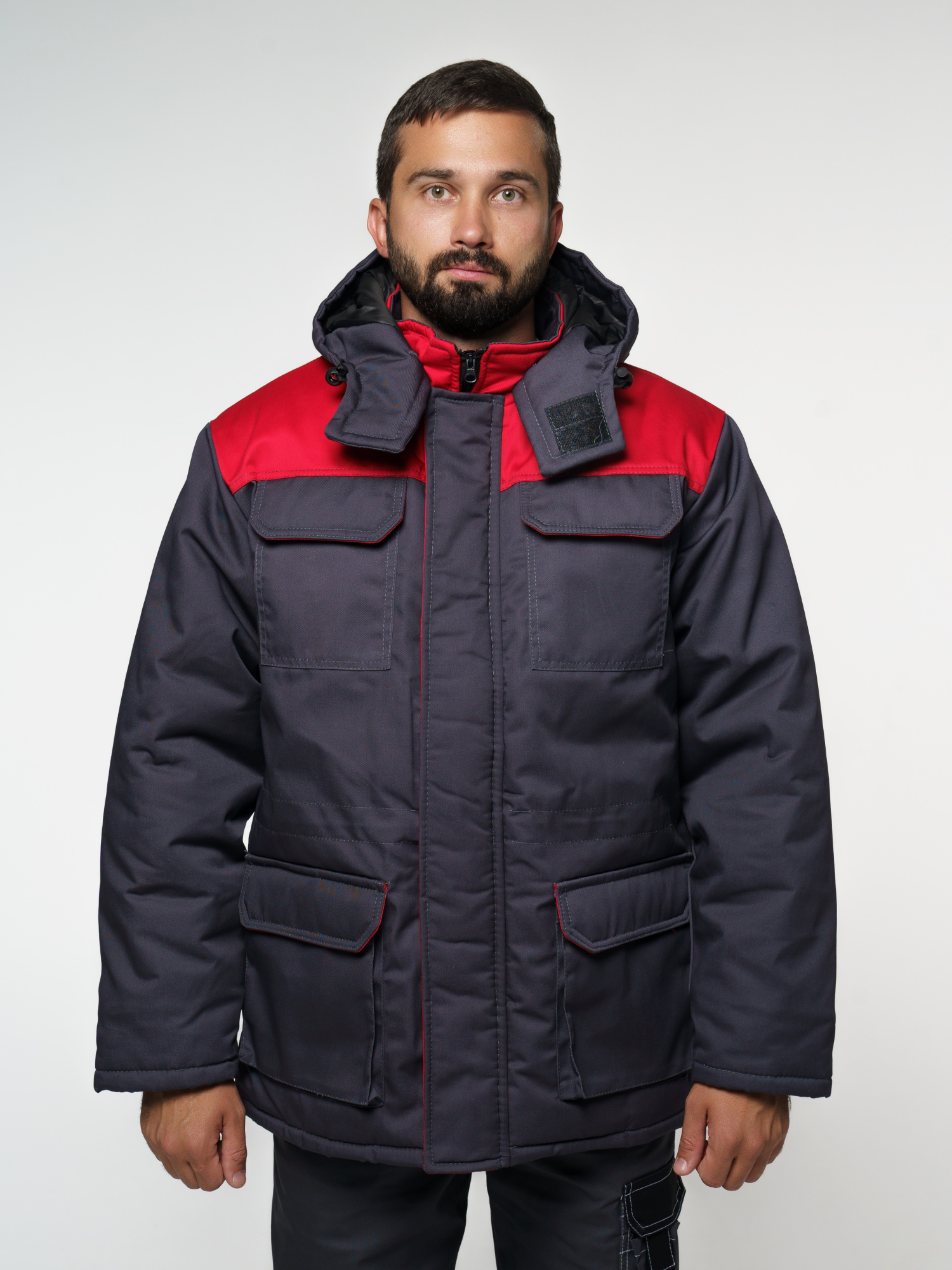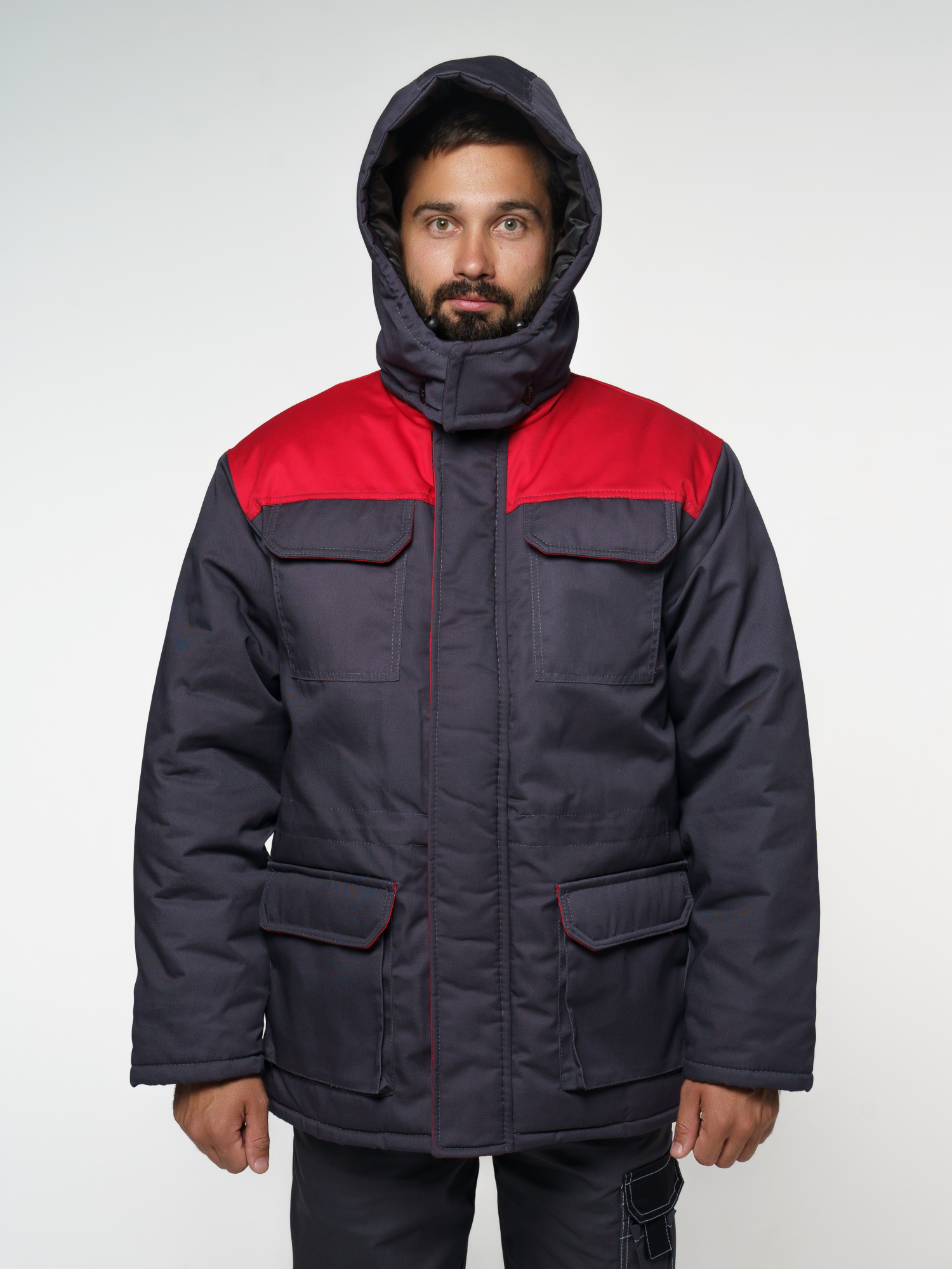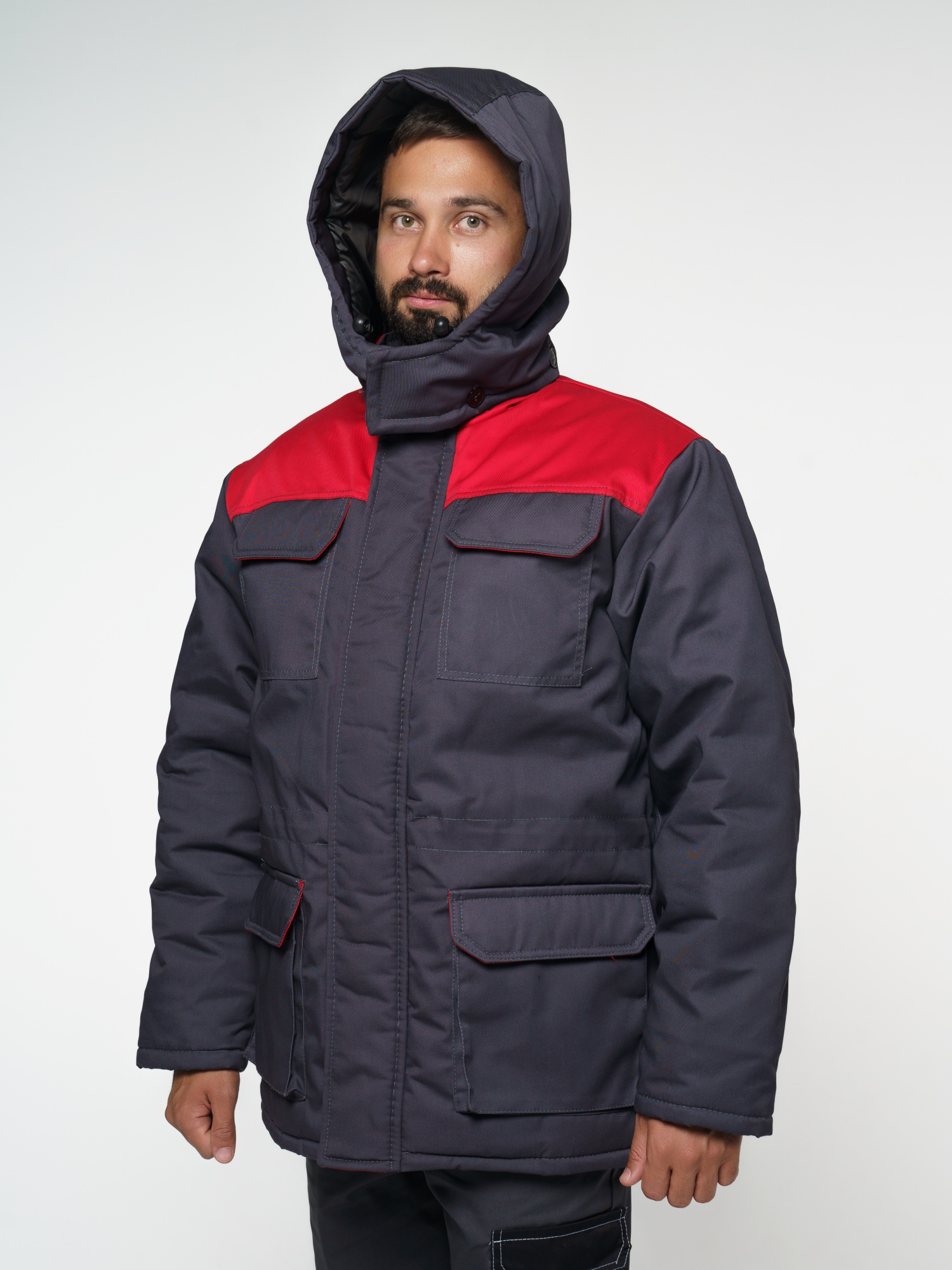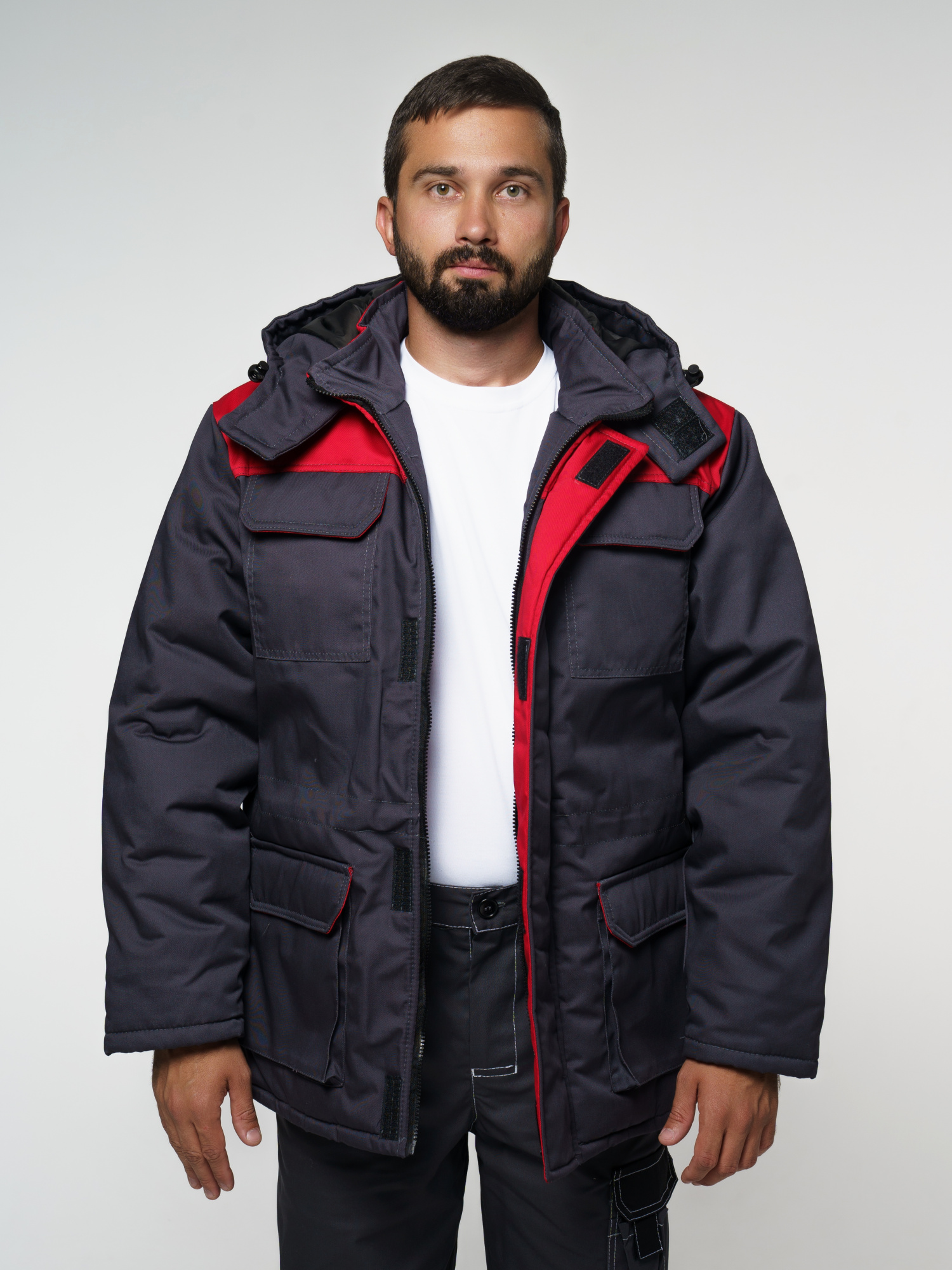 Куртка "БУРАН" утепленная ТВИЛ (т.серый/КРАСНЫЙ) Кур703 (ЧЗ) (120-124/194-200)