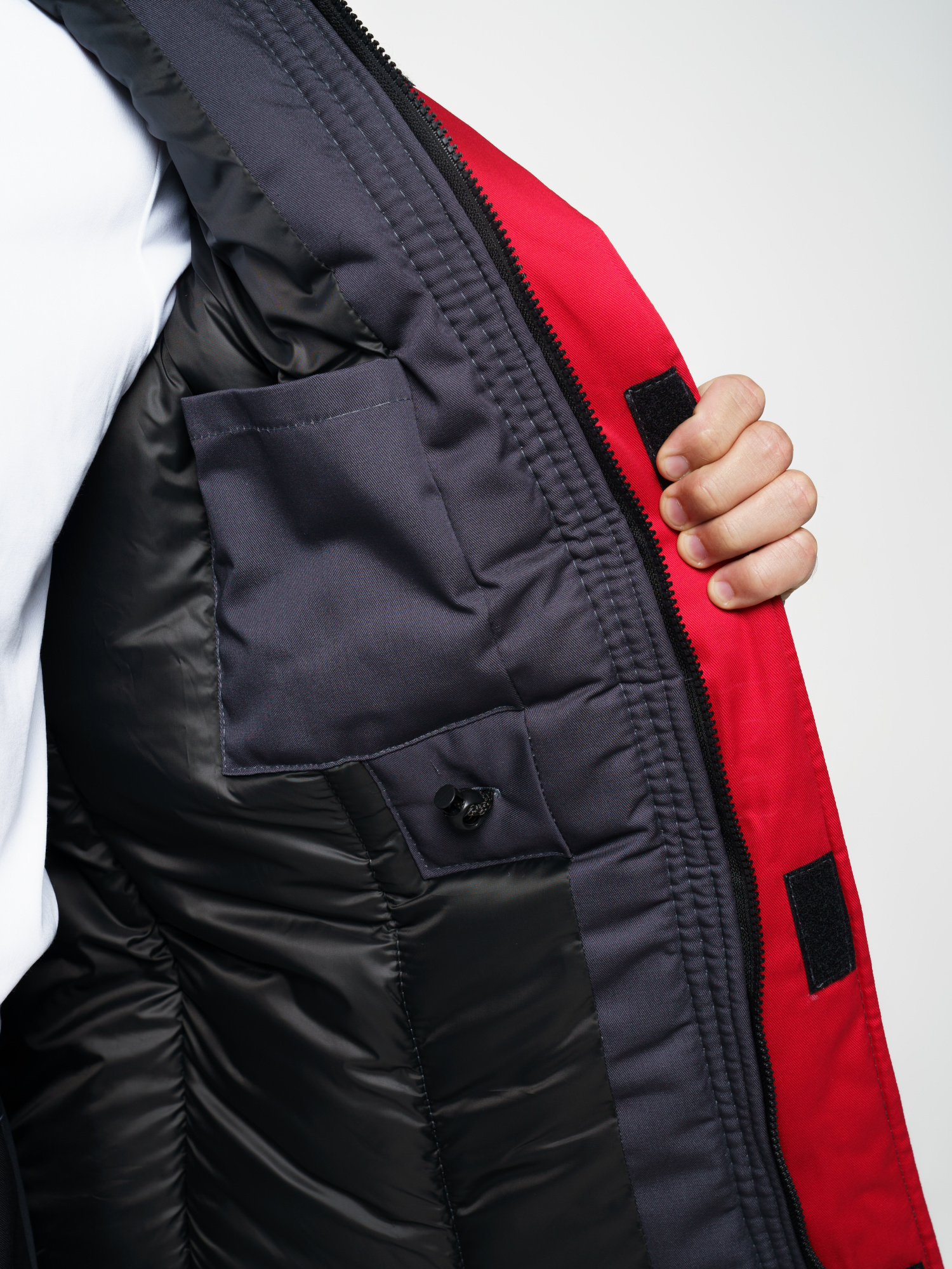 Куртка "БУРАН" утепленная ТВИЛ (т.серый/КРАСНЫЙ) Кур703 (ЧЗ) ( 88-92/194-200)