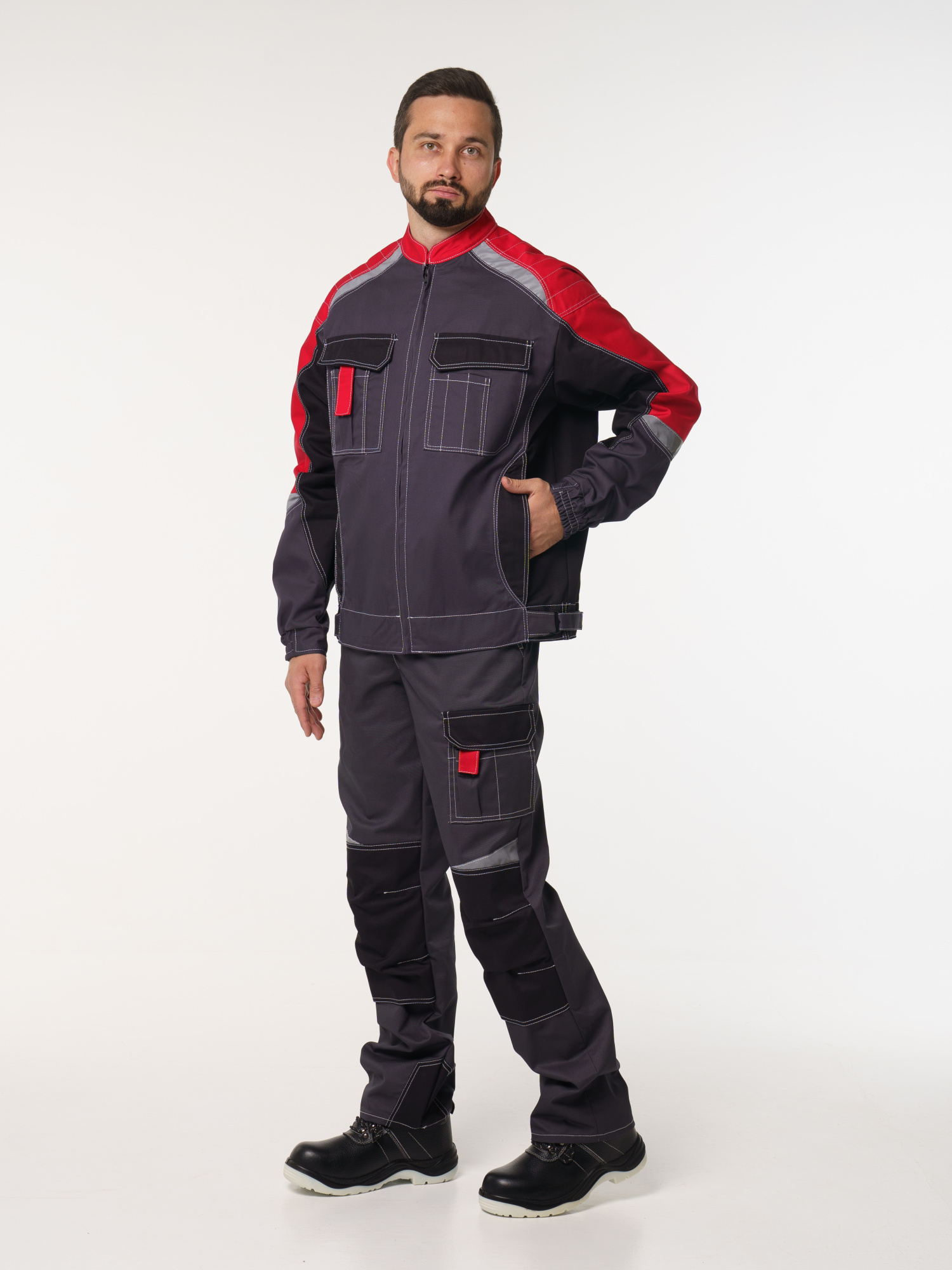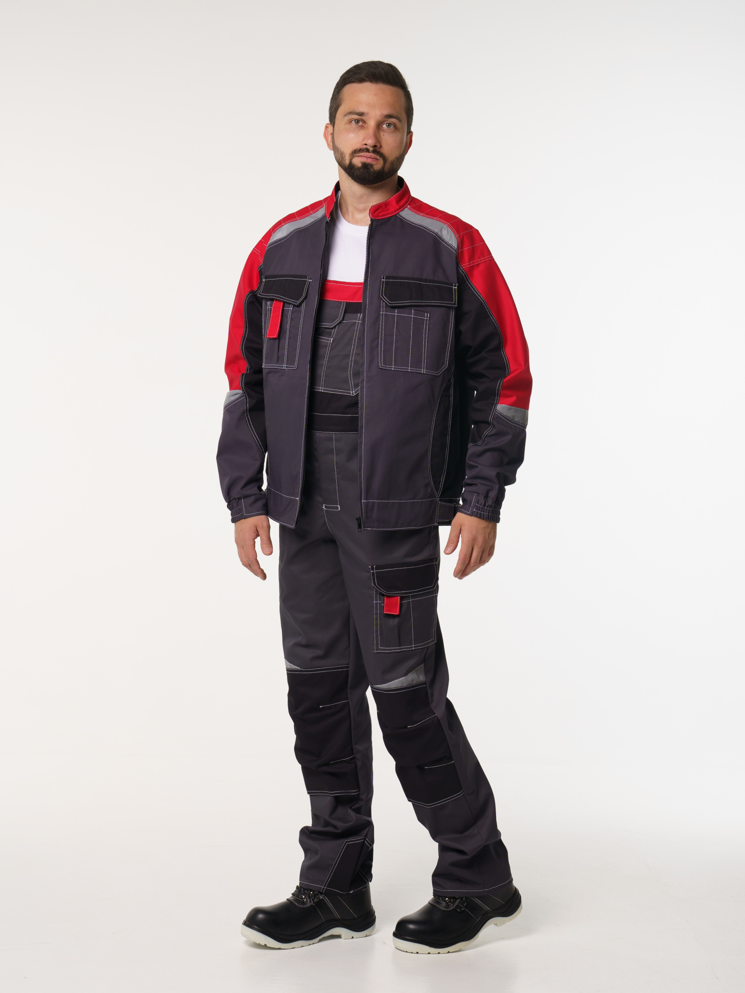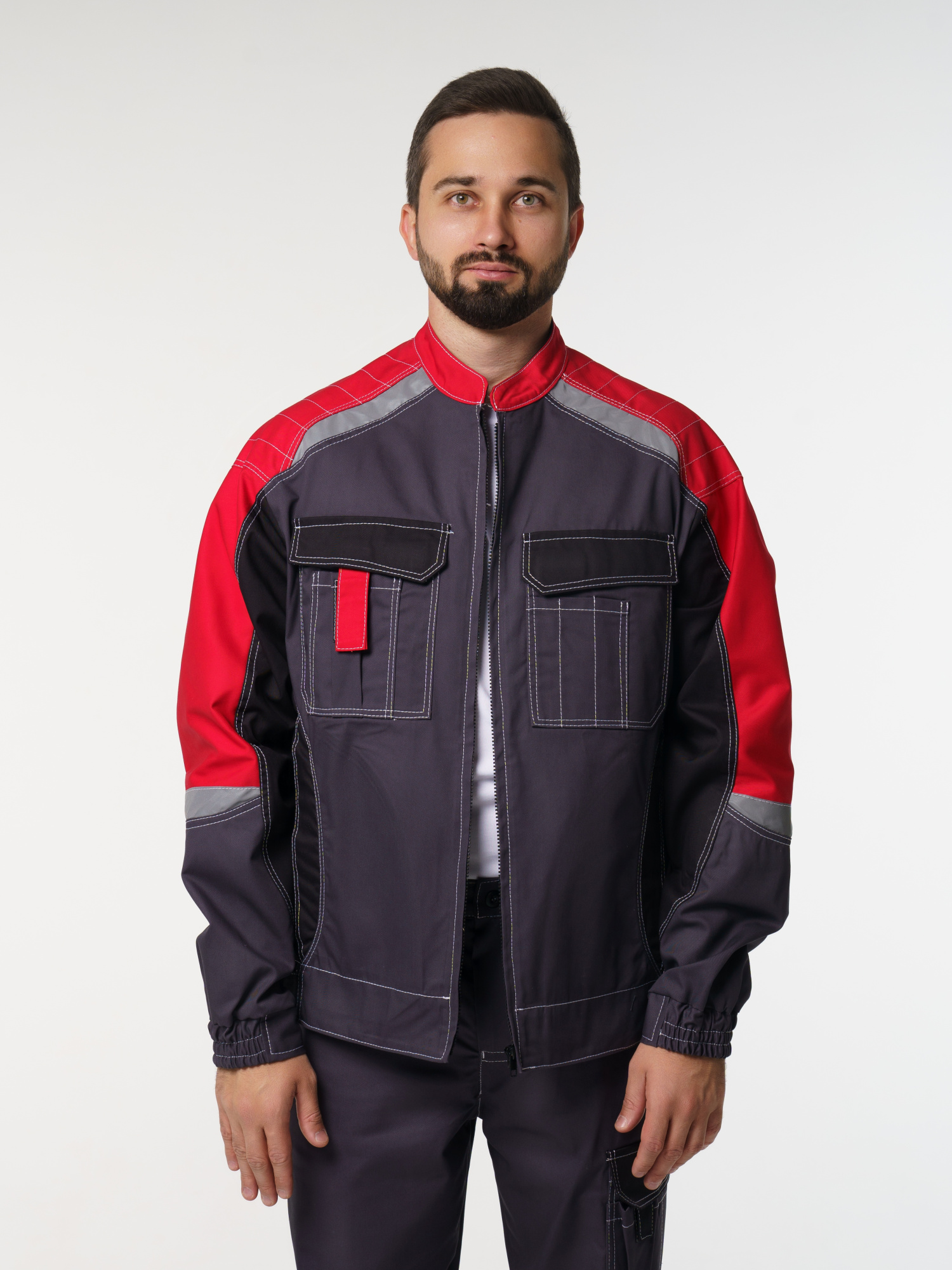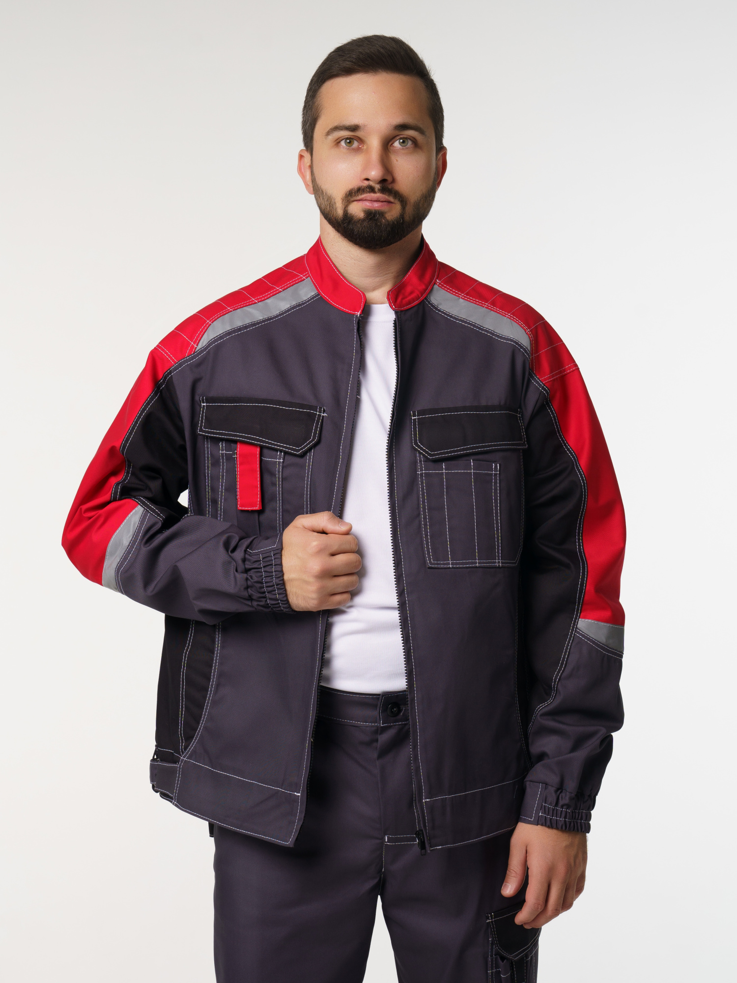 Куртка мужская Фаворит-Мега №116 серый с красным, черным (ЧЗ) (136-140/182-188)