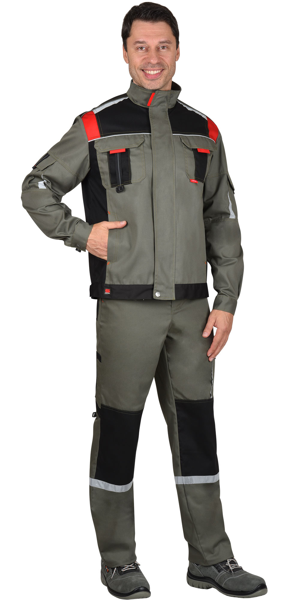 Куртка "СТАН" оливковая с черным и красным (ЧЗ) (112-116/182-188)