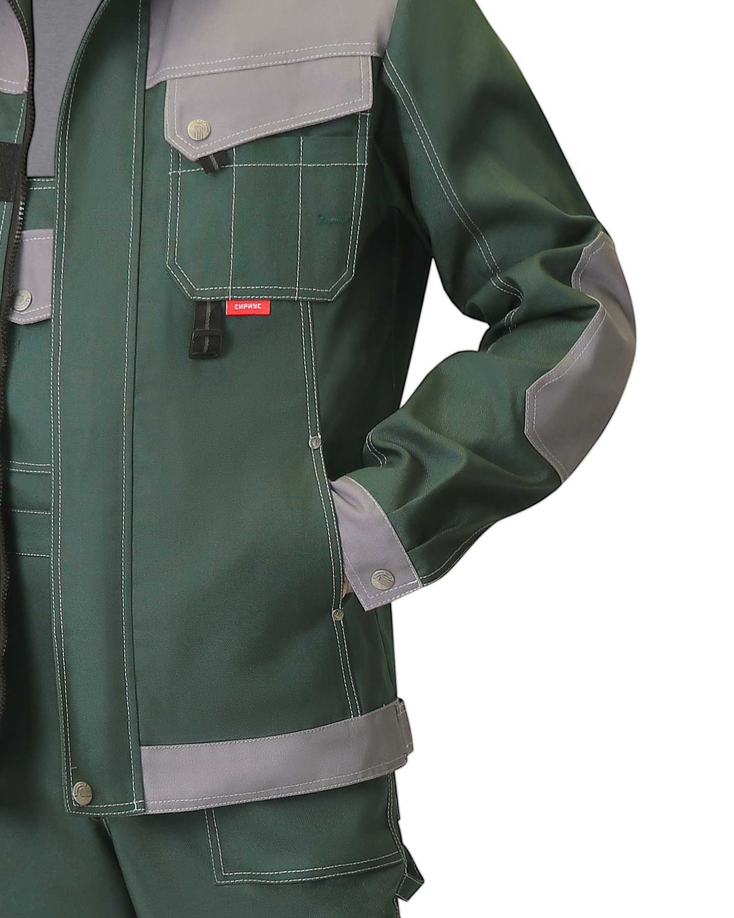Куртка "ВЕСТ-ВОРК" короткая зеленая со ср.серым (ЧЗ) (112-116/182-188)