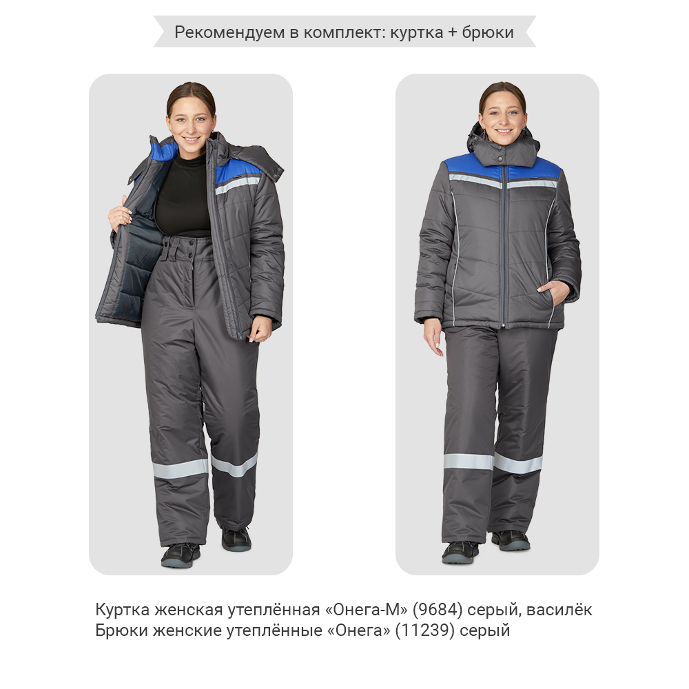 Куртка женская утеплённая "Онега-М" с трехслойным утеплителем тёмно-серая/электрик (ЧЗ) ПРАБО (104-108/158-164)
