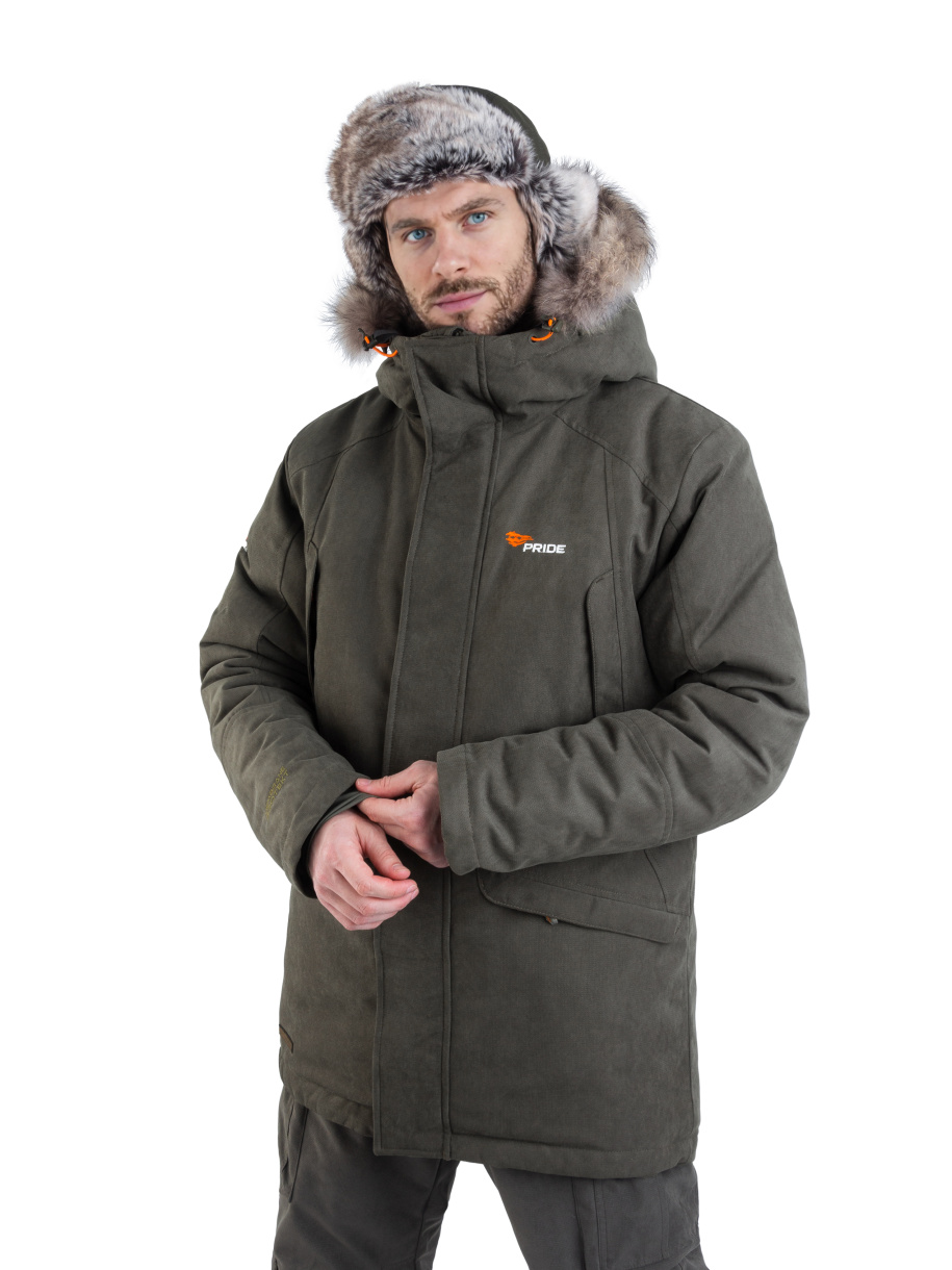 Универсальный функционал и современный дизайн позволяют носить куртку как на охоте, так и в городе. Мембранная ткань Исландия обеспечивает надежную защиту от ветра и мокрого снега. Помимо защиты от осадков, материал обладает высокой прочностью и практически бесшумен. Удлиненный крой, утяжка по талии, регулируемый капюшон с отделкой из натурального меха обеспечивают удобство и комфорт даже при температуре —35 С°.