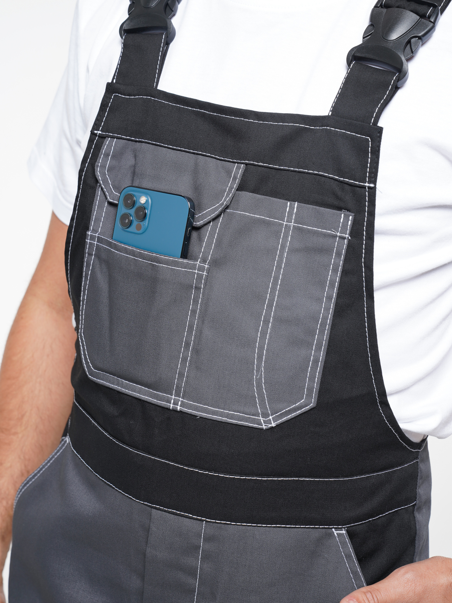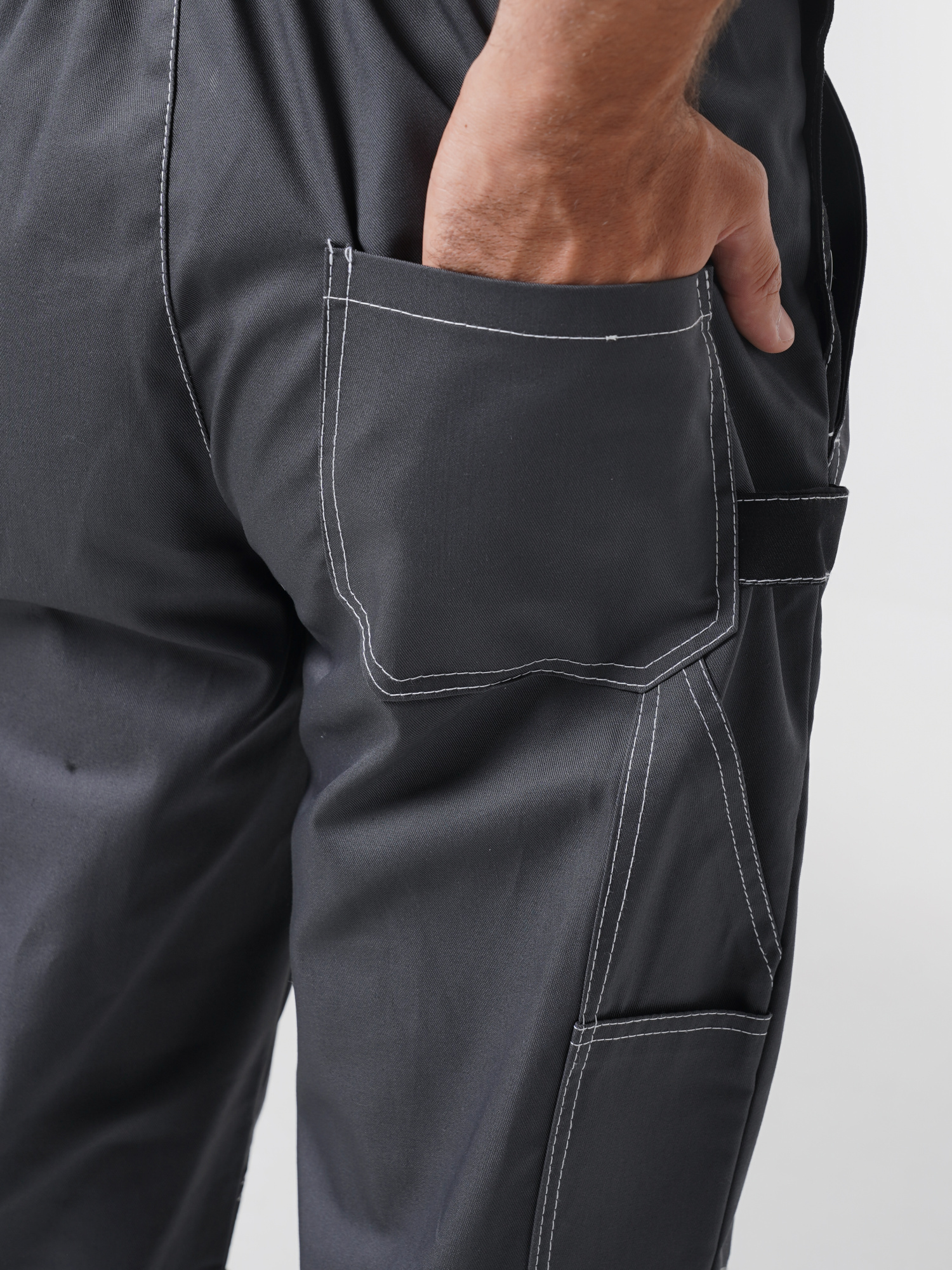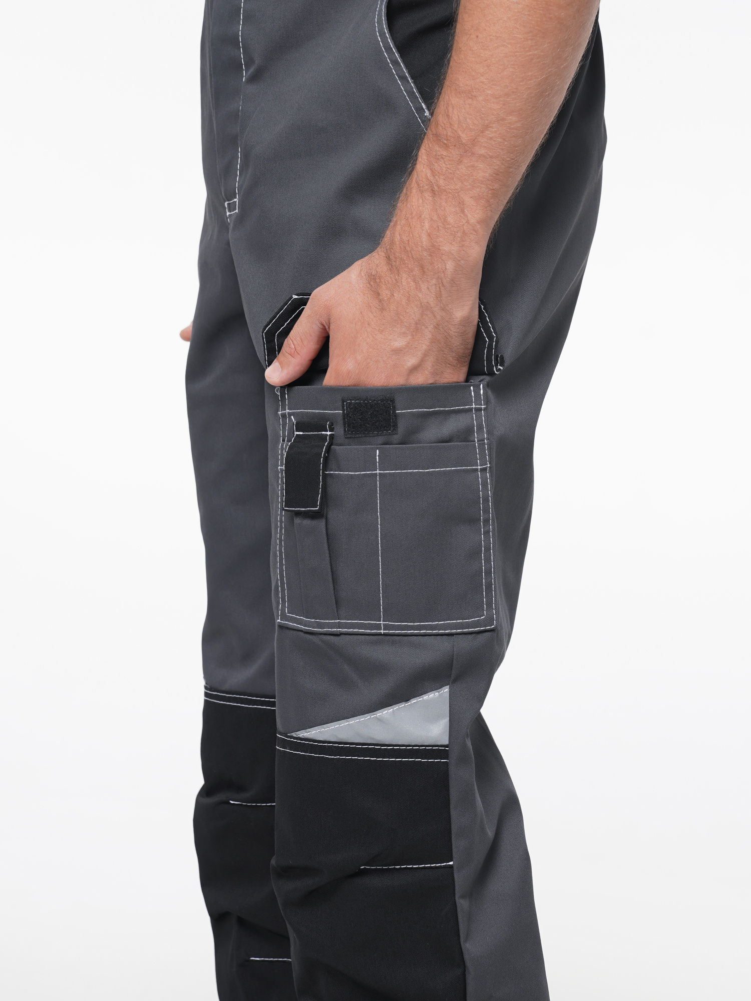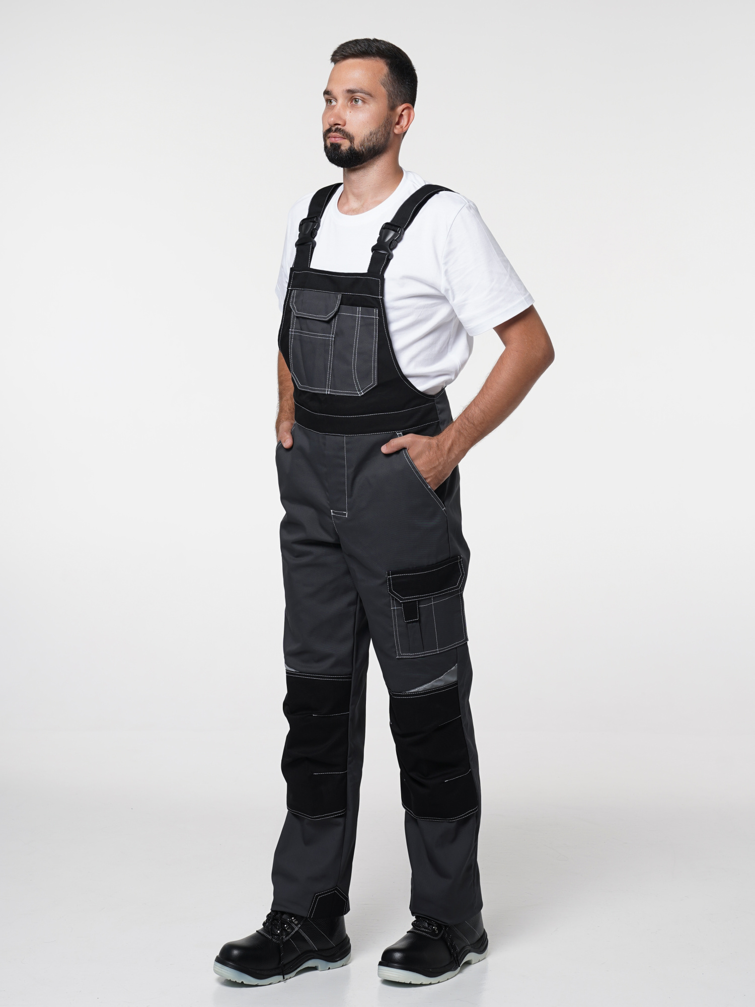 Полукомбинезон с застёжкой гульфика на молнию и застёжкой в боковом шве на пуговицы; с различными многофункциональными карманами; с объемными наколенниками. СОП-50 мм.