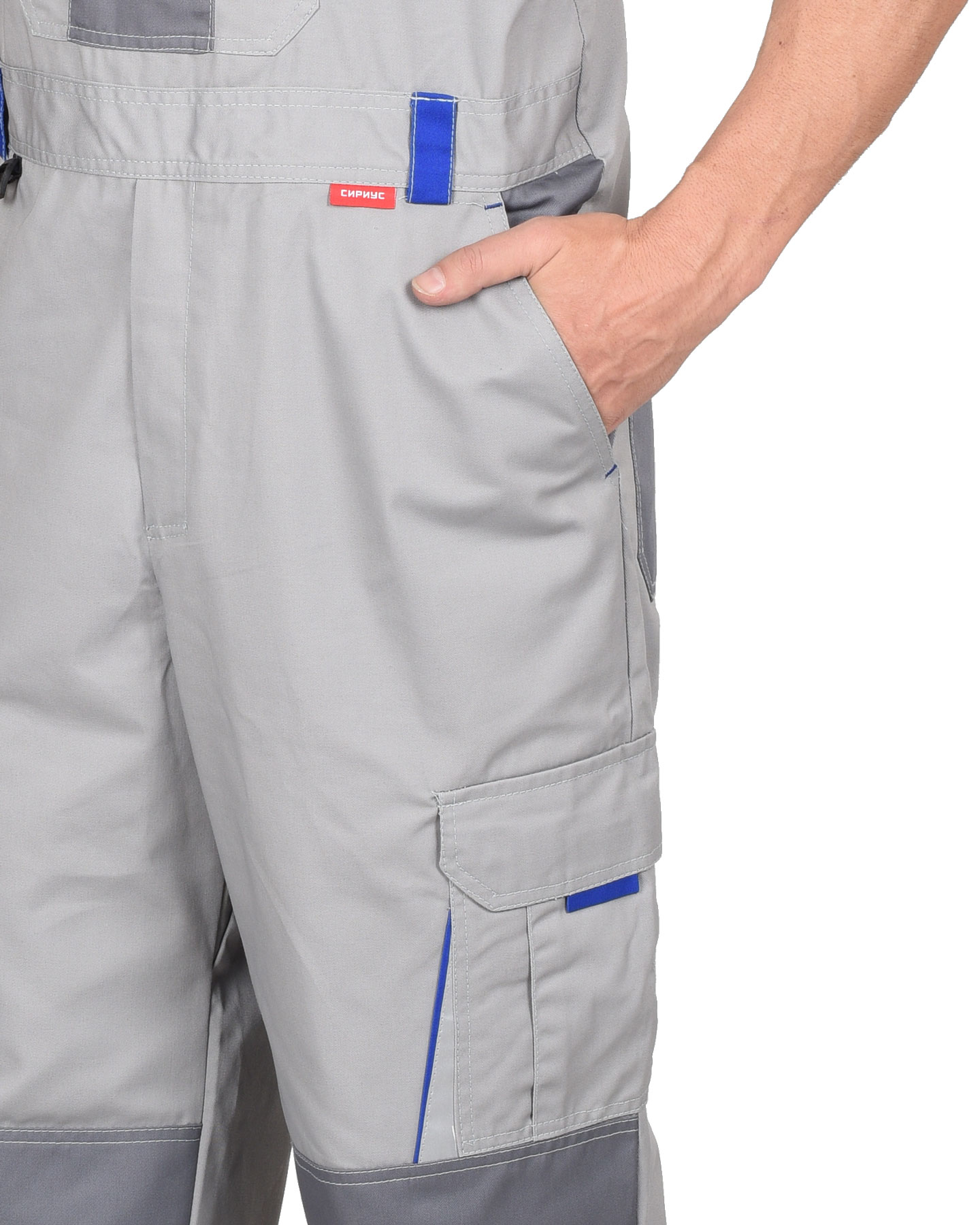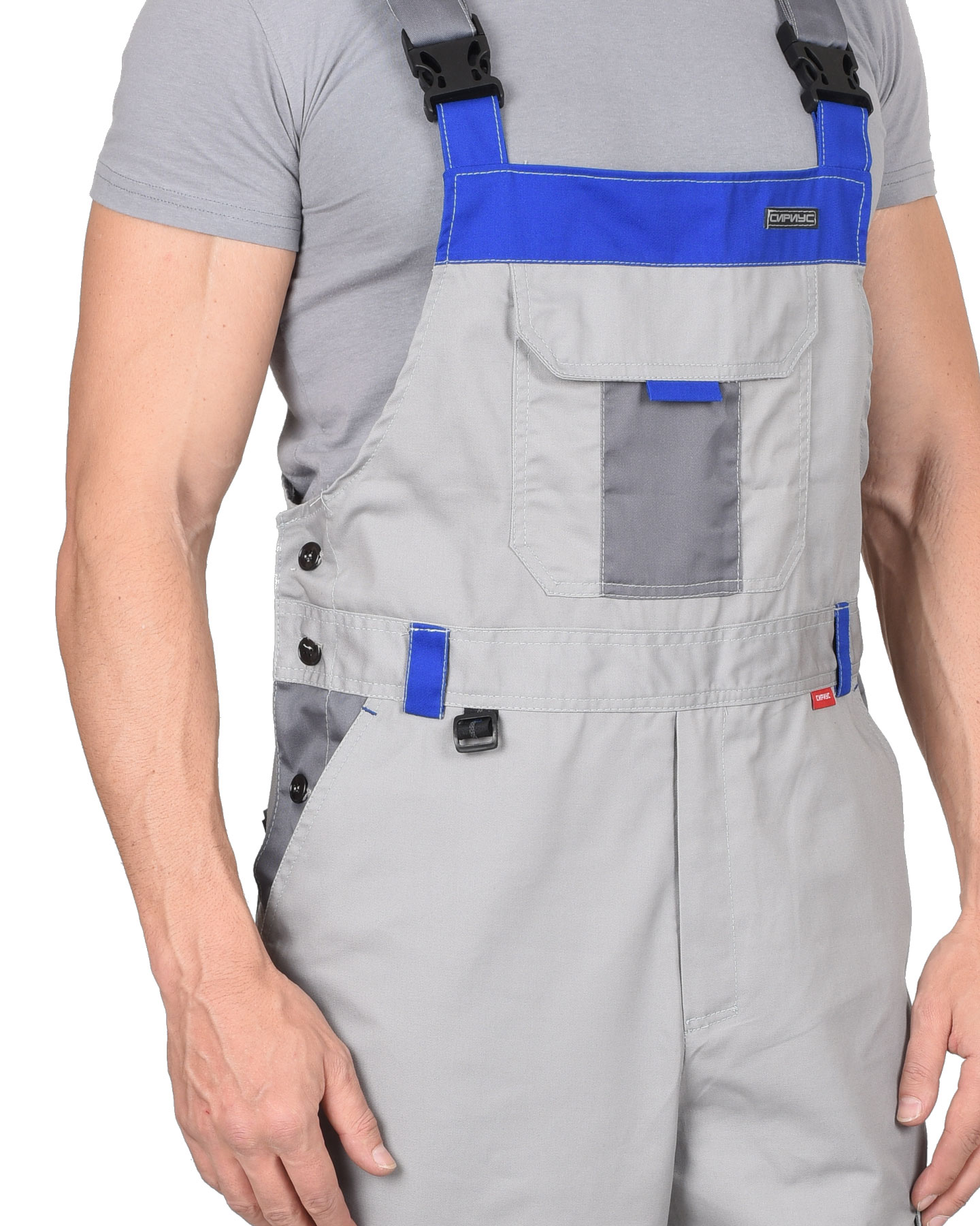 Полукомбинезон мужской летний «СИРИУС-СТАН» для защиты от общих производственных загрязнений в различных отраслях промышленности. Ткань верха: «Родос» смесовая с ВО пропиткой. Бретели регулируются эластичной тесьмой и фастексам.В полукомбинезоне предусмотрен СОП шириной 25мм для обозначения сигнальной видимости.